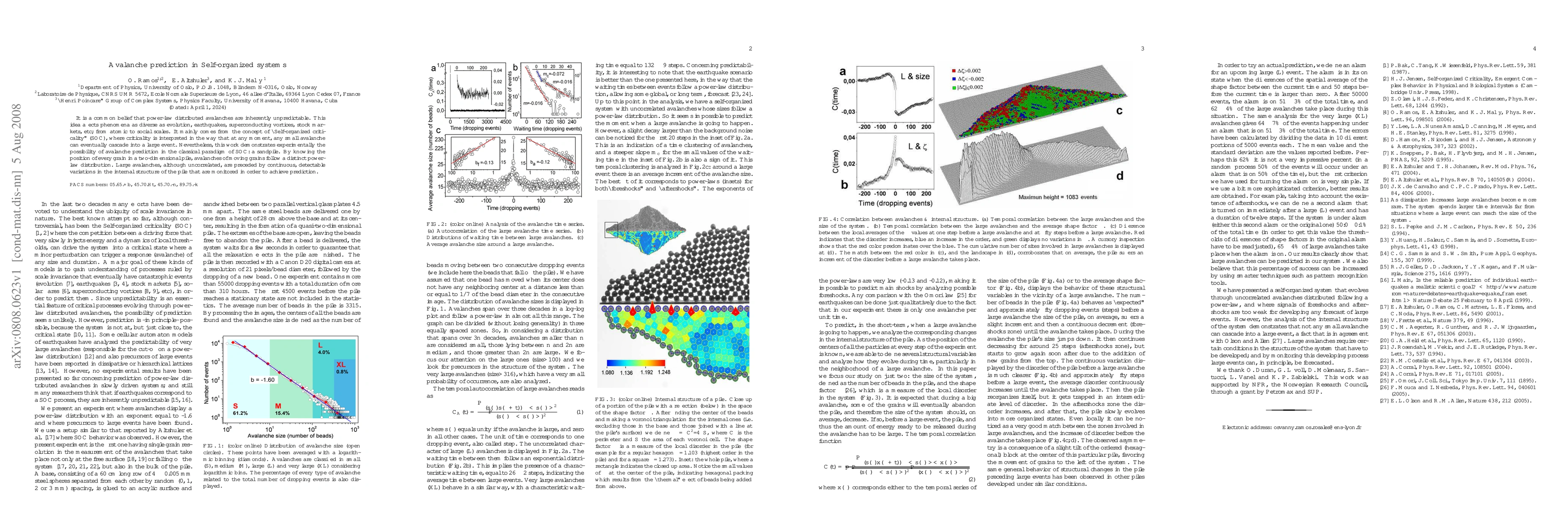 This paper challenges the notion that power-law distributed avalanches in self-organized systems are unpredictable, demonstrating through experiments on a sandpile model that large avalanches can be predicted by monitoring detectable variations in the internal structure. This finding has implications for understanding and predicting phenomena across various scales.