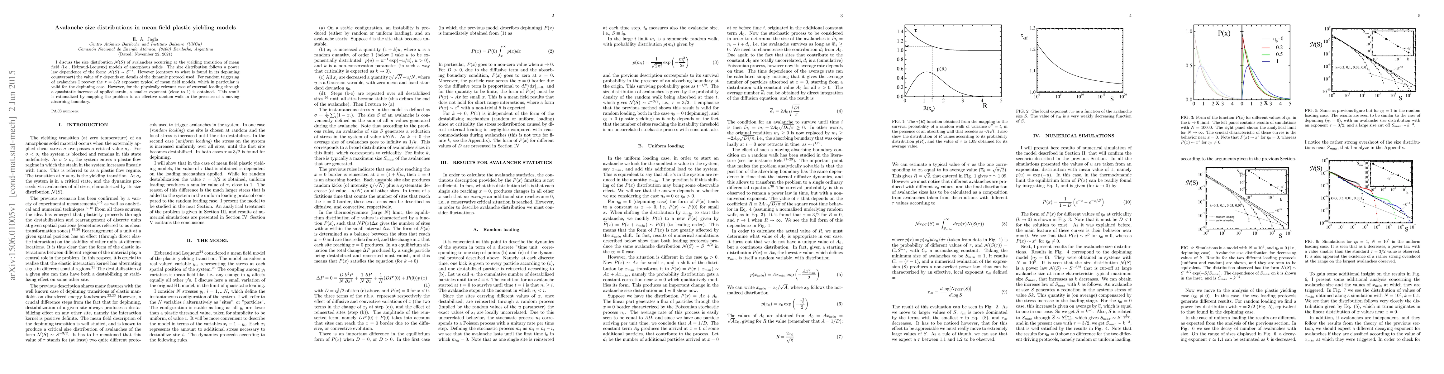 This paper examines the size distribution of avalanches in mean field plastic yielding models, finding that the exponent $\tau$ in the power law ${\cal N}(S)\sim S^{-\tau}$ varies with the dynamic protocol. For random triggering, $\tau=3/2$ is typical, but for quasistatic external loading, $\tau$ is closer to 1, rationalized by an effective random walk model with a moving boundary.