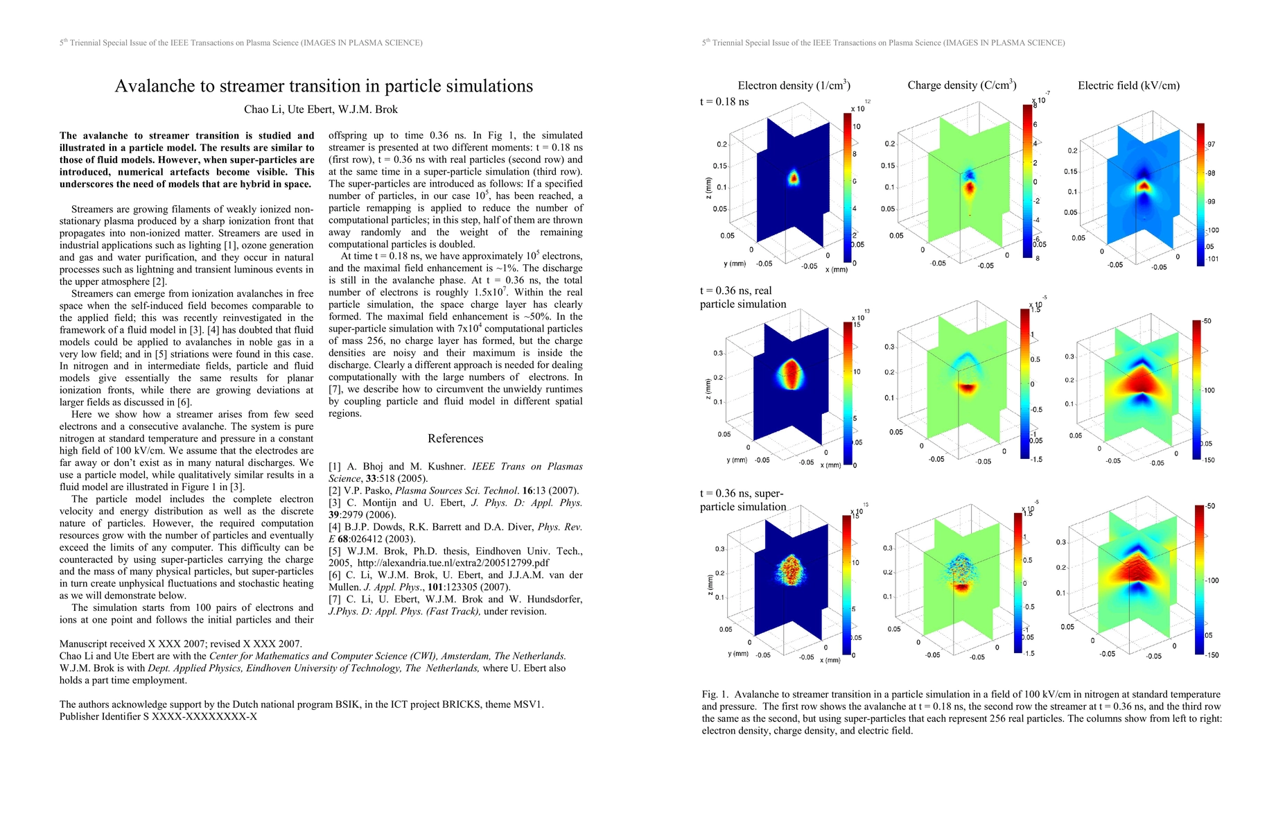 The avalanche to streamer transition is studied and illustrated in a particle model. The results are similar to those of fluid models. However, when super-particles are introduced, numerical artefacts become visible. This underscores the need of models that are hybrid in space.