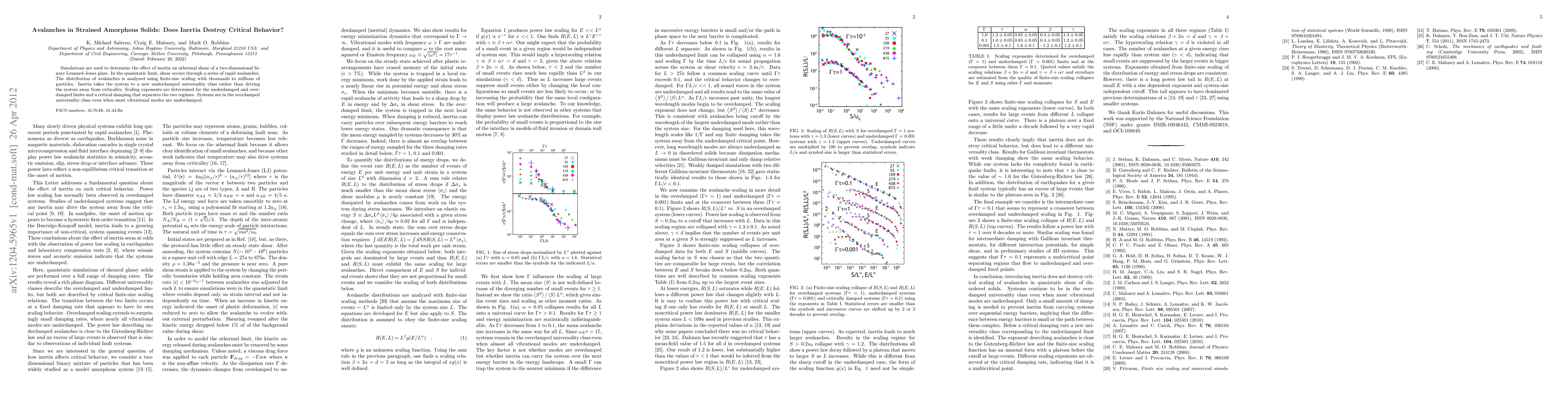 Simulations are used to determine the effect of inertia on athermal shear of a two-dimensional binary Lennard-Jones glass. In the quasistatic limit, shear occurs through a series of rapid avalanches. The distribution of avalanches is analyzed using finite-size scaling with thousands to millions of particles. Inertia takes the system to a new underdamped universality class rather than driving the system away from criticality. Scaling exponents are determined for the underdamped and overdamped limits and a critical damping that separates the two regimes. Systems are in the overdamped universality class even when most vibrational modes are underdamped.