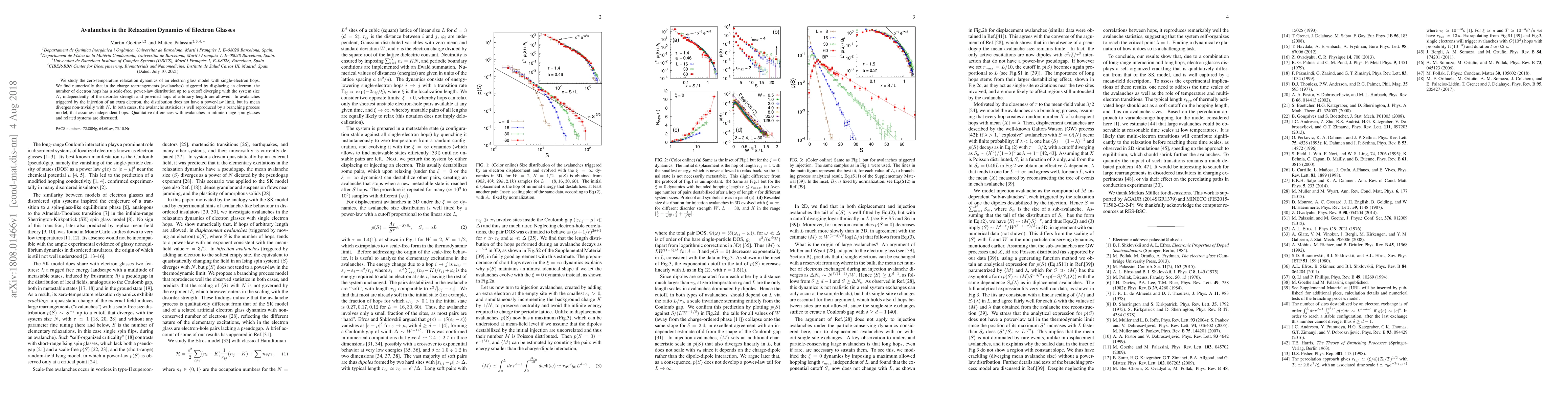 This paper investigates the relaxation dynamics of electron glasses at zero temperature, revealing scale-free power-law distributions in avalanches of electron hops triggered by displacements, and non-trivial divergence in the mean of avalanches from electron injections, both of which are modeled effectively by a branching process. Differences with infinite-range spin glasses are also discussed.