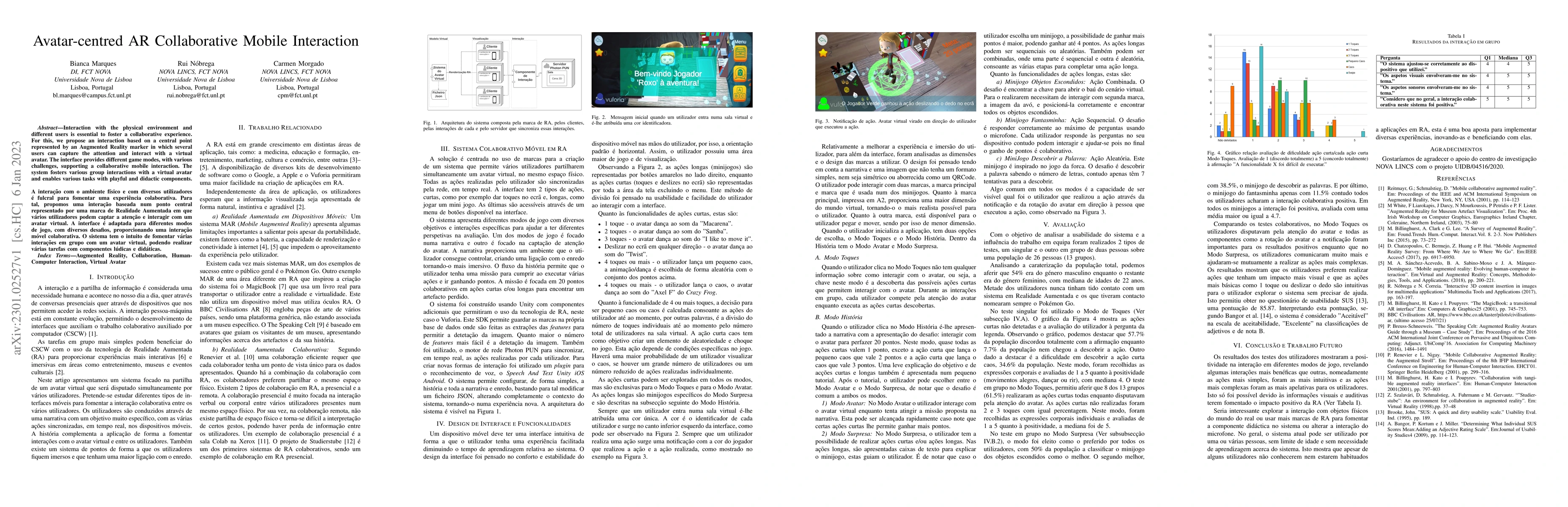 Interaction with the physical environment and different users is essential to foster a collaborative experience. For this, we propose an interaction based on a central point represented by an Augmented Reality marker in which several users can capture the attention and interact with a virtual avatar. The interface provides different game modes, with various challenges, supporting a collaborative mobile interaction. The system fosters various group interactions with a virtual avatar and enables various tasks with playful and didactic components.