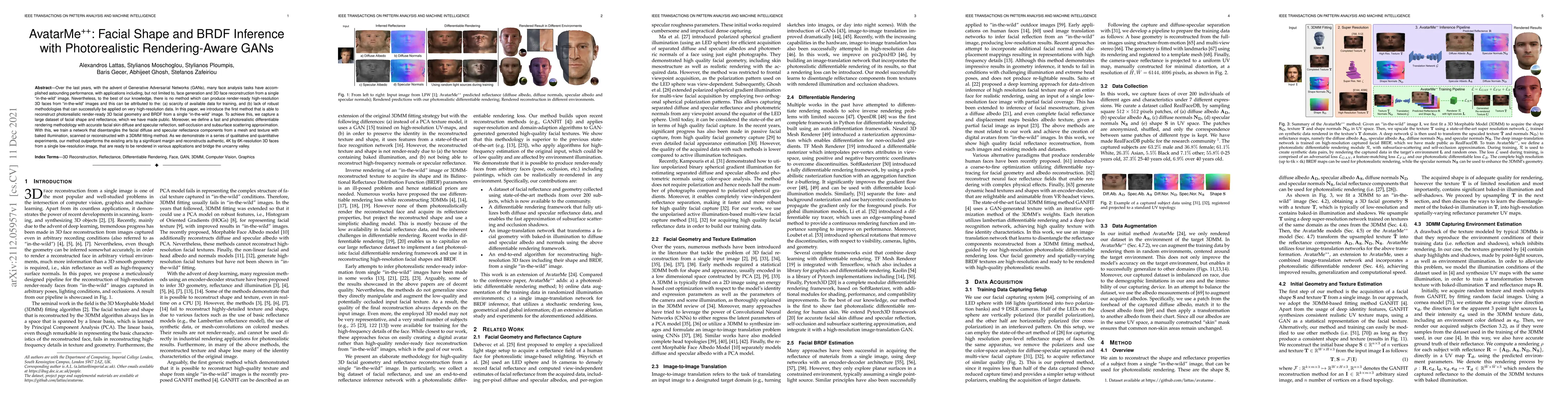 This paper introduces AvatarMe++, a novel GAN-based method for reconstructing high-resolution 3D facial geometry and BRDF from single "in-the-wild" images. The method addresses the scarcity of training data and lack of robust high-resolution techniques, achieving photorealistic rendering and bridging the uncanny valley.