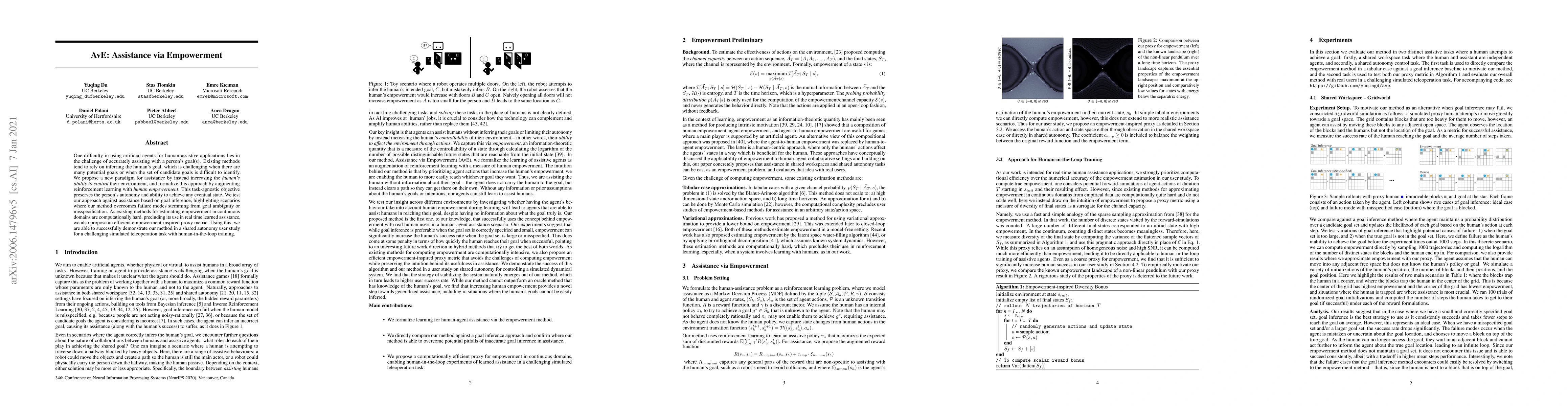 Researchers propose a new approach to assistance using empowerment, increasing human control over their environment, and demonstrate its effectiveness in a simulated teleoperation task. This method outperforms existing goal-inference based approaches in scenarios with ambiguous or poorly specified goals.