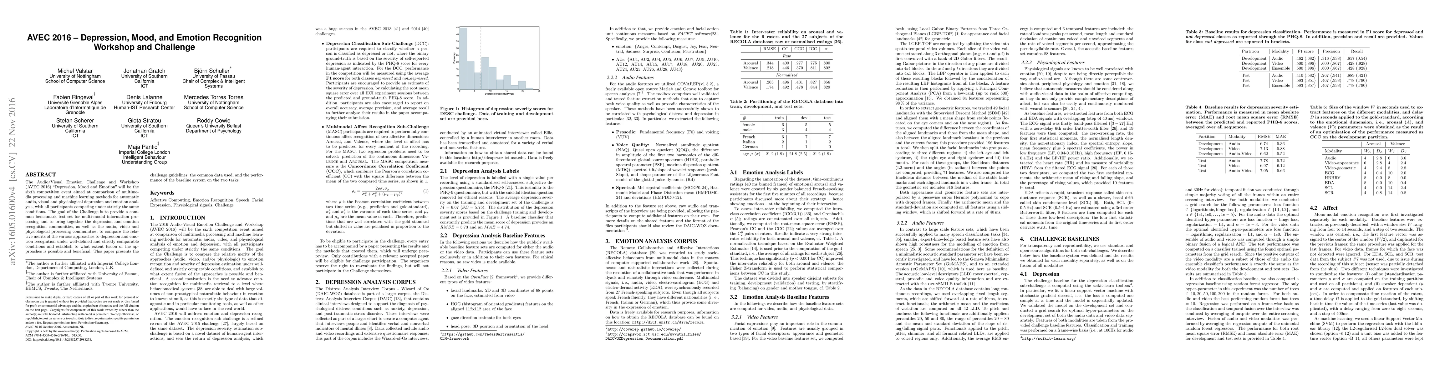 AVEC 2016 workshop and challenge aimed to compare multi-modal machine learning methods for automatic analysis of depression and emotion through audio, visual, and physiological data, providing a benchmark to evaluate and integrate different recognition approaches. The event also showcased baseline system performance on these tasks.