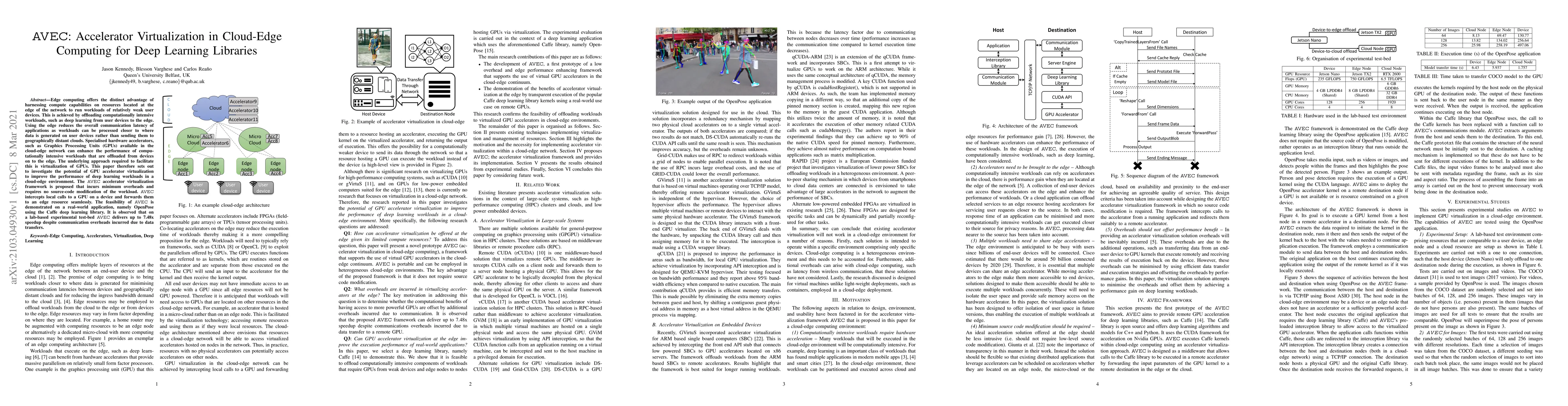 This paper proposes AVEC, a framework for GPU accelerator virtualization in cloud-edge computing to enhance deep learning performance. AVEC enables seamless offloading of deep learning workloads from user devices to edge resources, achieving up to 7.48x speedup in a lab-based test using OpenPose with the Caffe library.