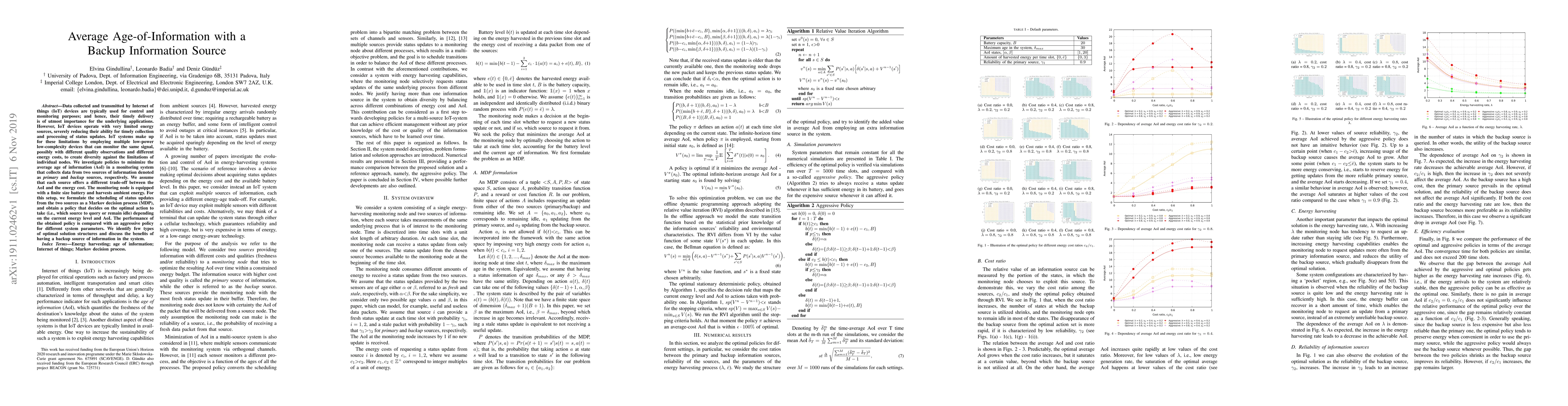 Data collected and transmitted by Internet of things (IoT) devices are typically used for control and monitoring purposes; and hence, their timely delivery is of utmost importance for the underlying applications. However, IoT devices operate with very limited energy sources, severely reducing their ability for timely collection and processing of status updates. IoT systems make up for these limitations by employing multiple low-power low-complexity devices that can monitor the same signal, possibly with different quality observations and different energy costs, to create diversity against the limitations of individual nodes. We investigate policies to minimize the average age of information (AoI) in a monitoring system that collects data from two sources of information denoted as primary and backup sources, respectively. We assume that each source offers a different trade-off between the AoI and the energy cost. The monitoring node is equipped with a finite size battery and harvests ambient energy. For this setup, we formulate the scheduling of status updates from the two sources as a Markov decision process (MDP), and obtain a policy that decides on the optimal action to take (i.e., which source to query or remain idle) depending on the current energy level and AoI. The performance of the obtained policy is compared with an aggressive policy for different system parameters. We identify few types of optimal solution structures and discuss the benefits of having a backup source of information in the system.