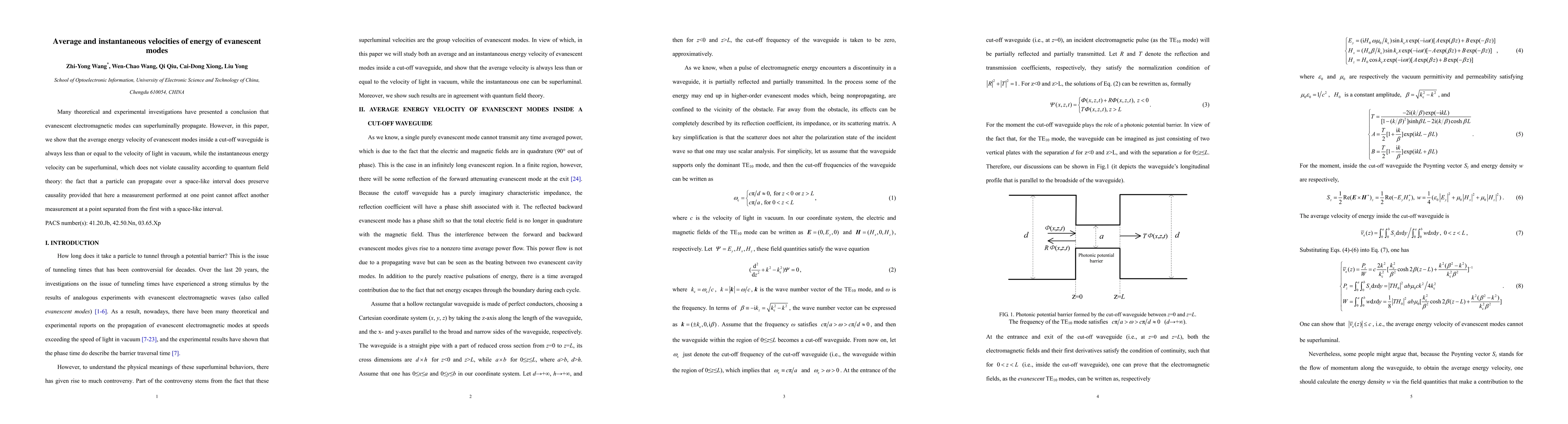 This paper demonstrates that while the instantaneous energy velocity of evanescent modes can exceed the speed of light, the average energy velocity remains subluminal, thus preserving causality as per quantum field theory. The superluminal instantaneous velocity does not violate causality because measurements cannot influence each other across space-like intervals.