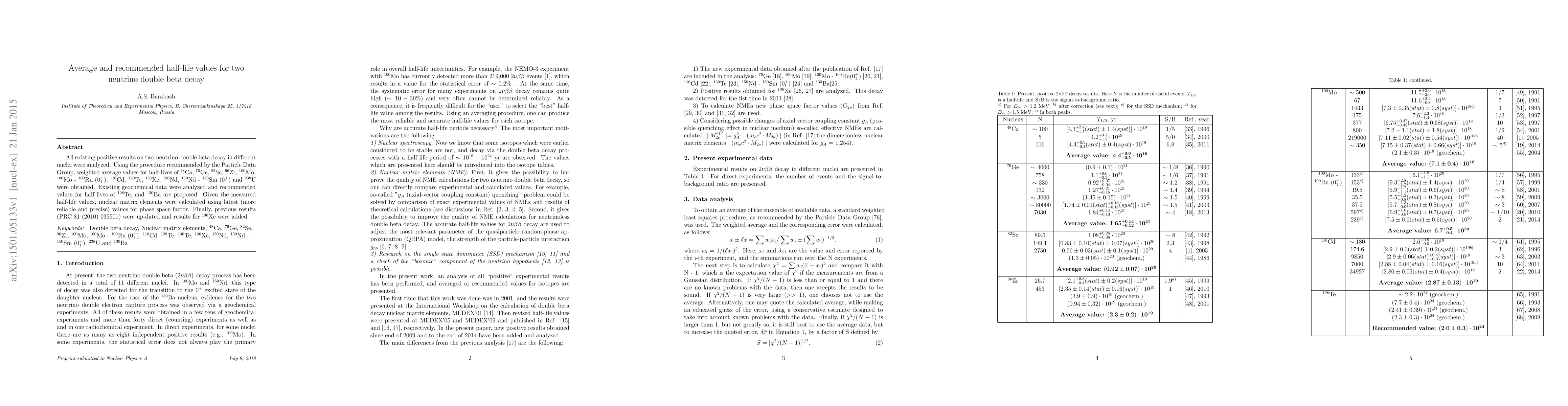 Research paper updates average half-life values for two neutrino double beta decay in various nuclei, providing new insights into the process, while also recommending revised half-lives based on geochemical data.