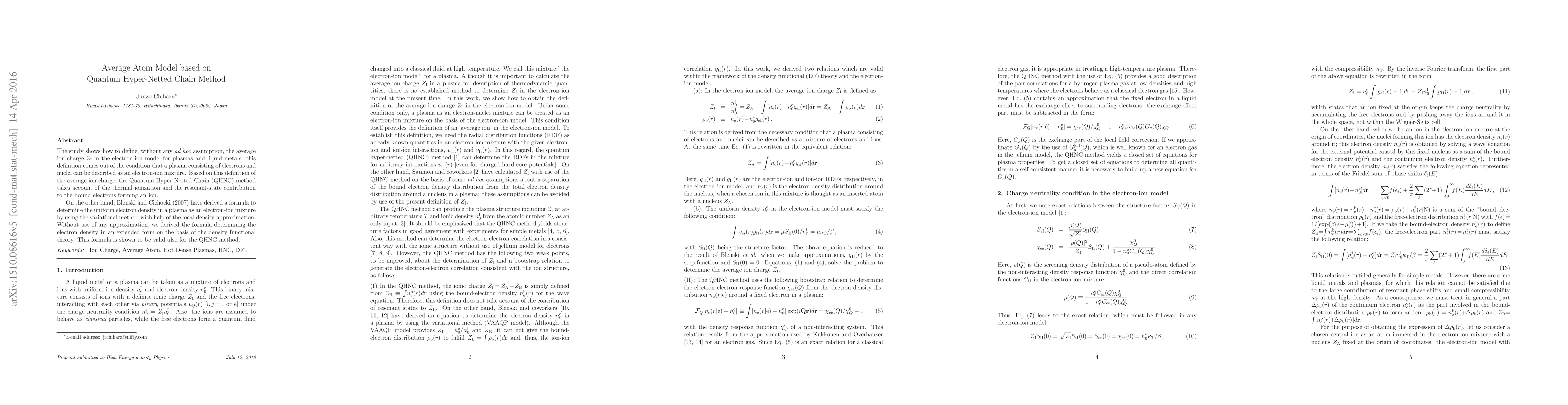 This paper defines the average ion charge $Z_{\rm I}$ in electron-ion models for plasmas and liquid metals using the Quantum Hyper-Netted Chain (QHNC) method, accounting for resonant-state contributions. It also derives an extended formula for electron density $n_0$ in plasmas without approximations, validating it for the QHNC method.