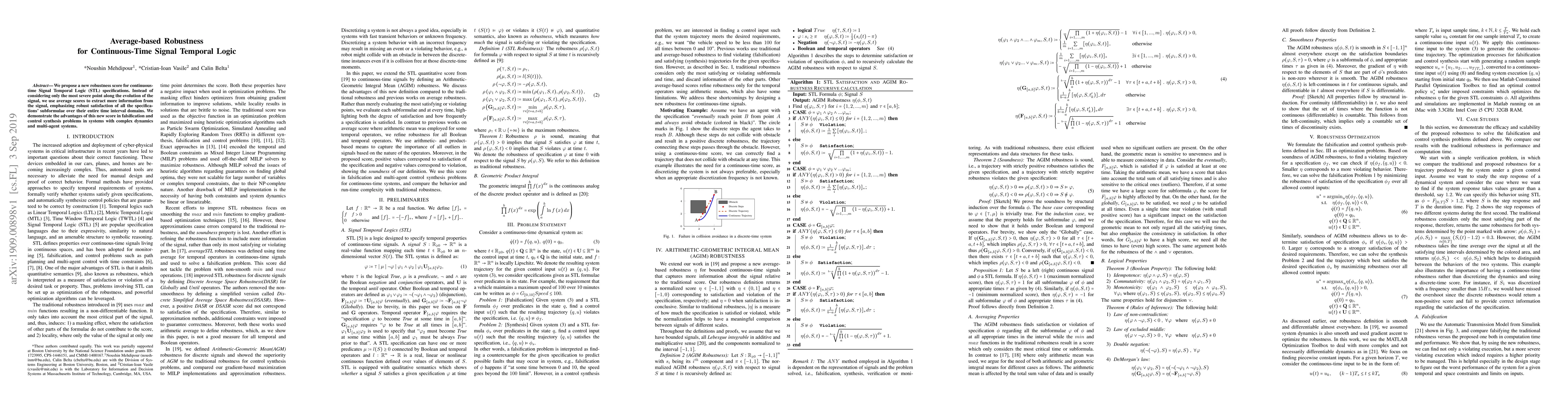 A novel robustness score for continuous-time STL is presented, which uses arithmetic and geometric integral means.