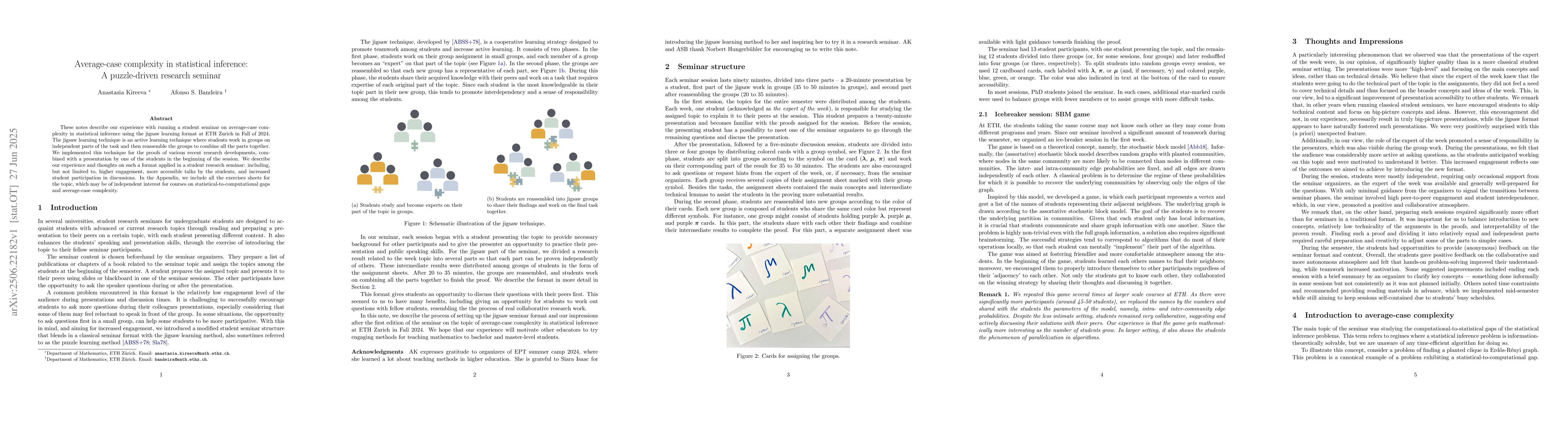 These notes describe our experience with running a student seminar on average-case complexity in statistical inference using the jigsaw learning format at ETH Zurich in Fall of 2024. The jigsaw learning technique is an active learning technique where students work in groups on independent parts of the task and then reassemble the groups to combine all the parts together. We implemented this technique for the proofs of various recent research developments, combined with a presentation by one of the students in the beginning of the session. We describe our experience and thoughts on such a format applied in a student research seminar: including, but not limited to, higher engagement, more accessible talks by the students, and increased student participation in discussions. In the Appendix, we include all the exercises sheets for the topic, which may be of independent interest for courses on statistical-to-computational gaps and average-case complexity.