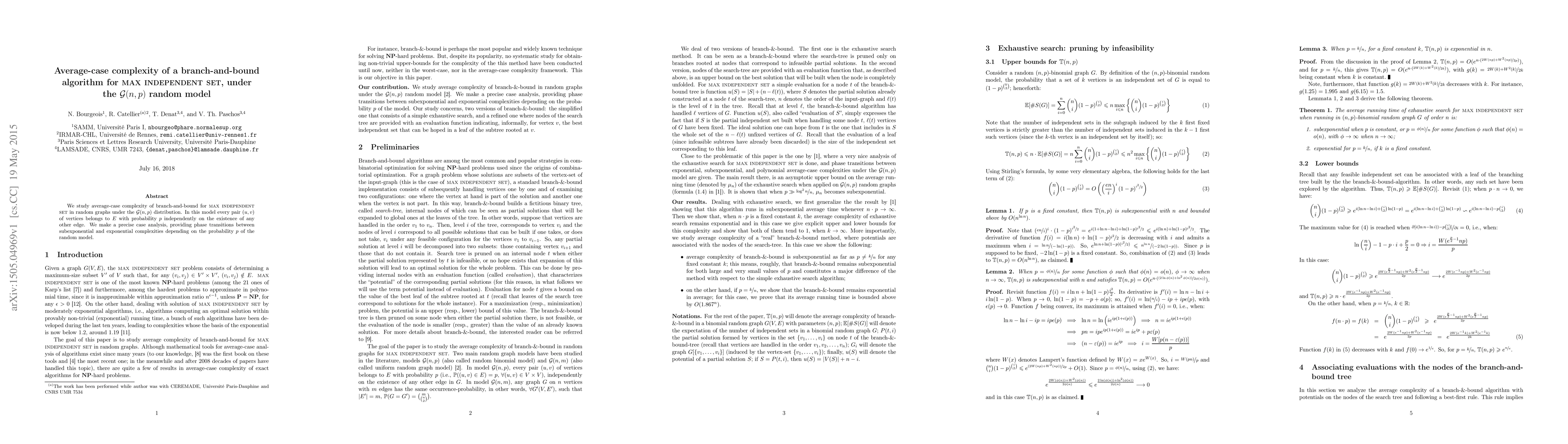 This paper analyzes the average-case complexity of a branch-and-bound algorithm for finding the maximum independent set in random graphs with probability $p$ of edge existence, revealing phase transitions between subexponential and exponential complexities.