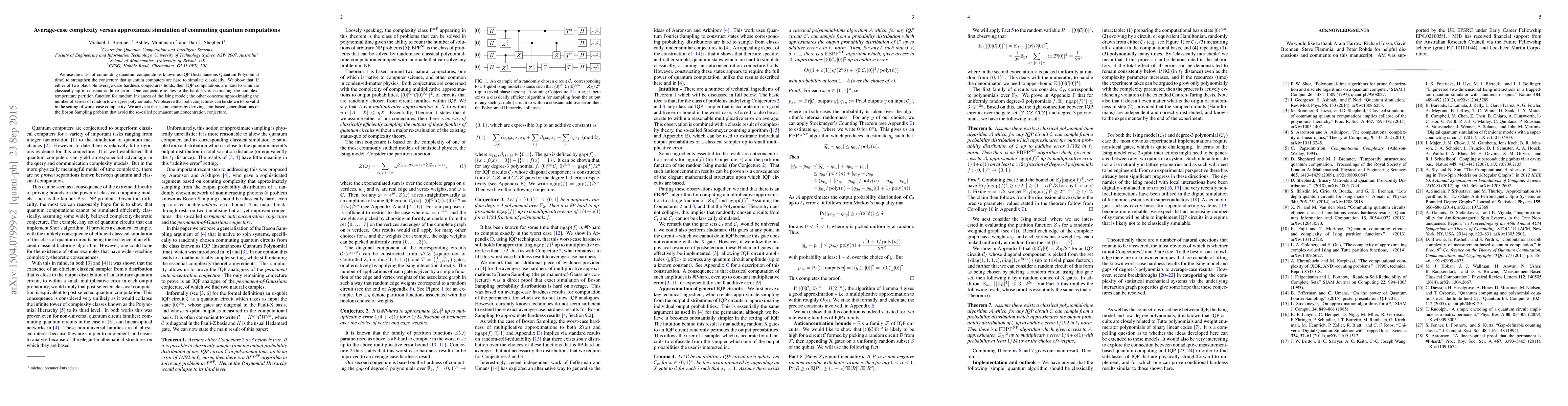 We use the class of commuting quantum computations known as IQP (Instantaneous Quantum Polynomial time) to strengthen the conjecture that quantum computers are hard to simulate classically. We show that, if either of two plausible average-case hardness conjectures holds, then IQP computations are hard to simulate classically up to constant additive error. One conjecture relates to the hardness of estimating the complex-temperature partition function for random instances of the Ising model; the other concerns approximating the number of zeroes of random low-degree polynomials. We observe that both conjectures can be shown to be valid in the setting of worst-case complexity. We arrive at these conjectures by deriving spin-based generalisations of the Boson Sampling problem that avoid the so-called permanent anticoncentration conjecture.