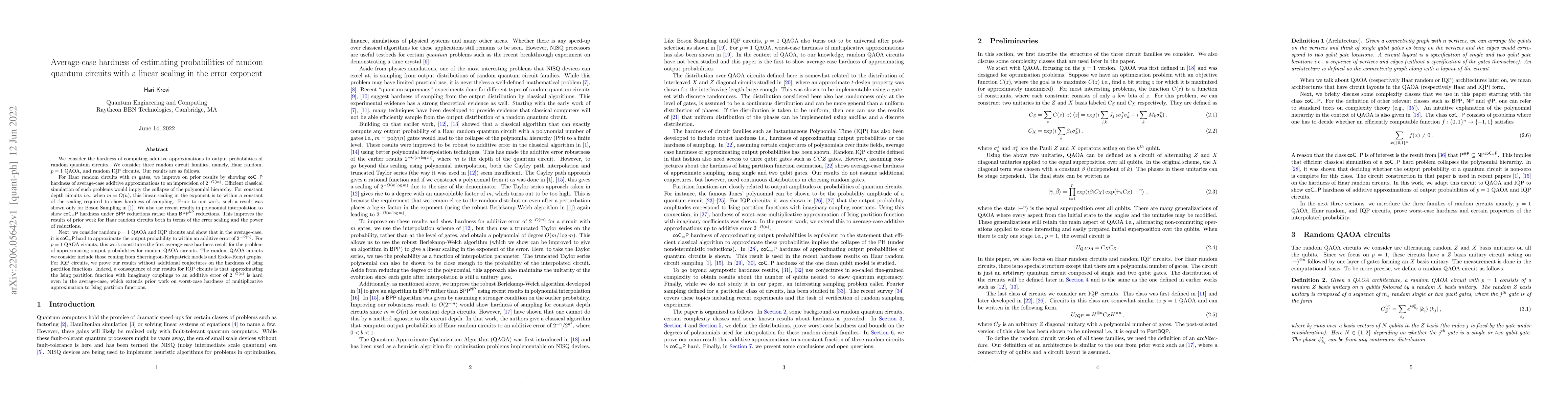 This paper establishes the average-case hardness of estimating output probabilities for various random quantum circuit families, including Haar random, $p=1$ QAOA, and random IQP circuits. It demonstrates $\mathsf{coC_=P}$ hardness for additive approximations with linear scaling in the error exponent, showing that efficient classical simulation would collapse the polynomial hierarchy.