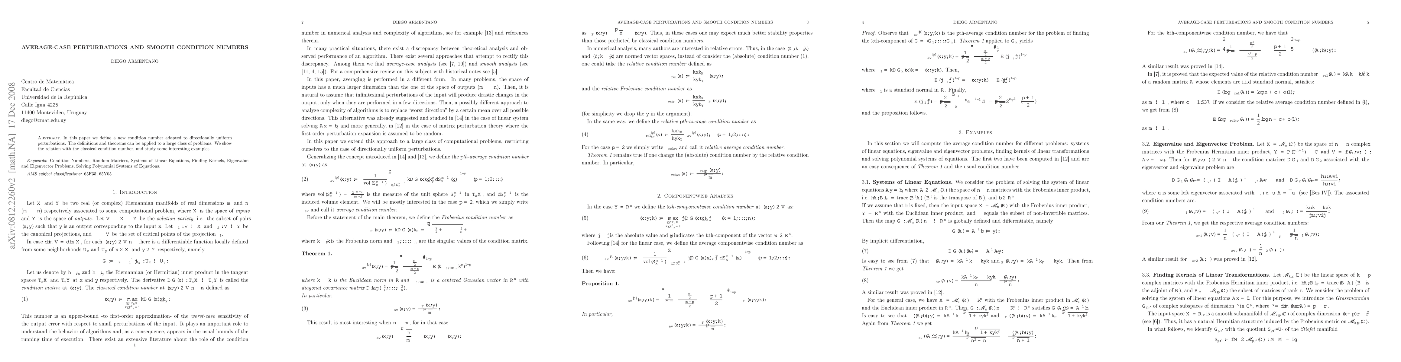 This paper introduces a new condition number that can handle directionally uniform perturbations, relating it to classical condition numbers and exploring its applications in various problems.