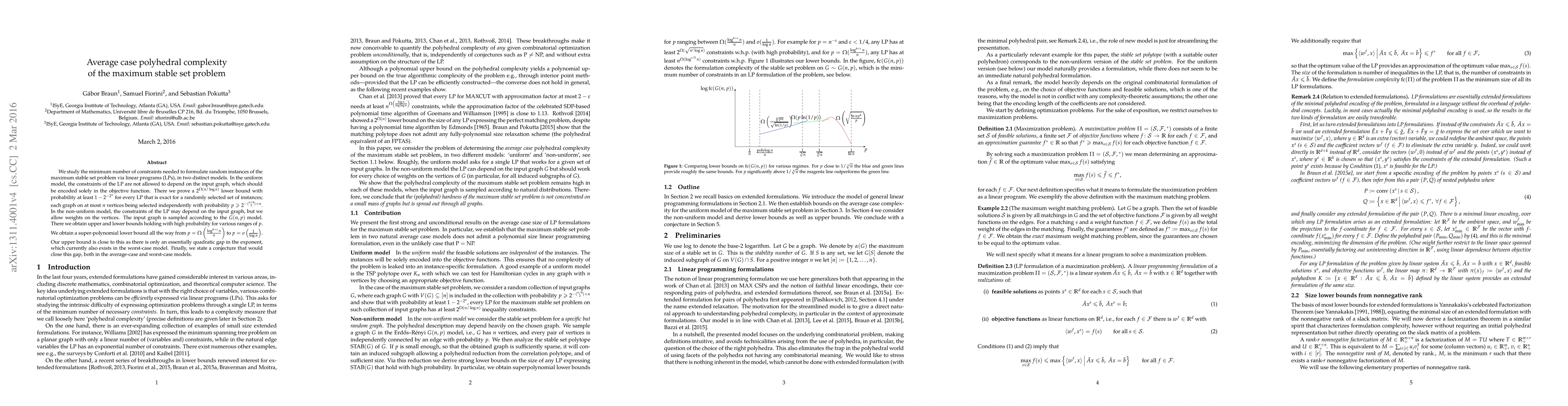 Researchers study the complexity of formulating maximum stable set problems via linear programs in two models, obtaining super-polynomial lower bounds for average-case instances and nearly matching upper bounds.