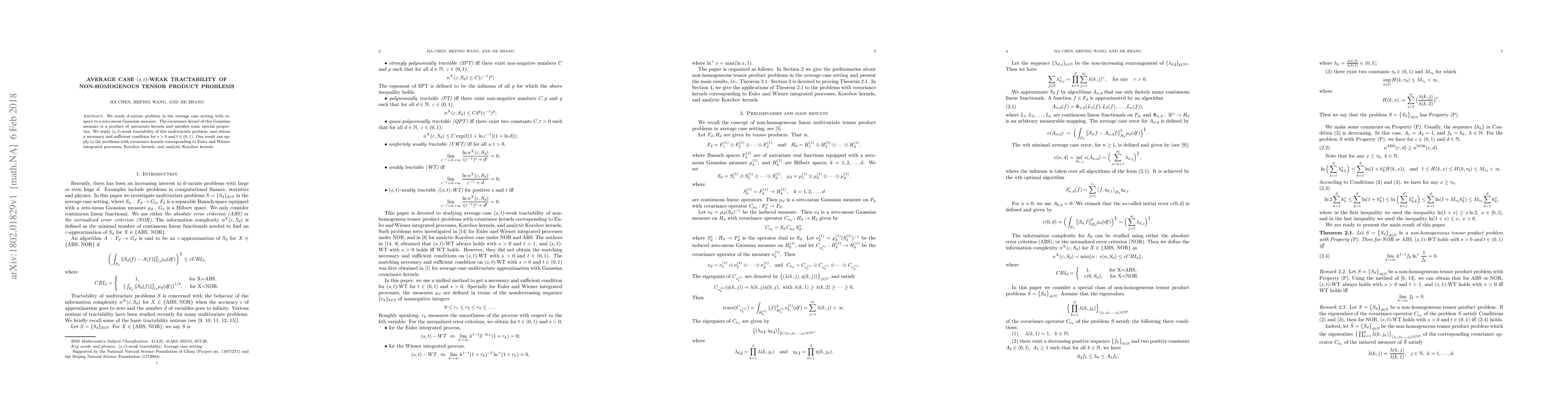 We study $d$-variate problem in the average case setting with respect to a zero-mean Gaussian measure. The covariance kernel of this Gaussian measure is a product of univariate kernels and satisfies some special properties. We study $(s, t)$-weak tractability of this multivariate problem, and obtain a necessary and sufficient condition for $s>0$ and $t\in(0,1)$. Our result can apply to the problems with covariance kernels corresponding to Euler and Wiener integrated processes, Korobov kernels, and analytic Korobov kernels.