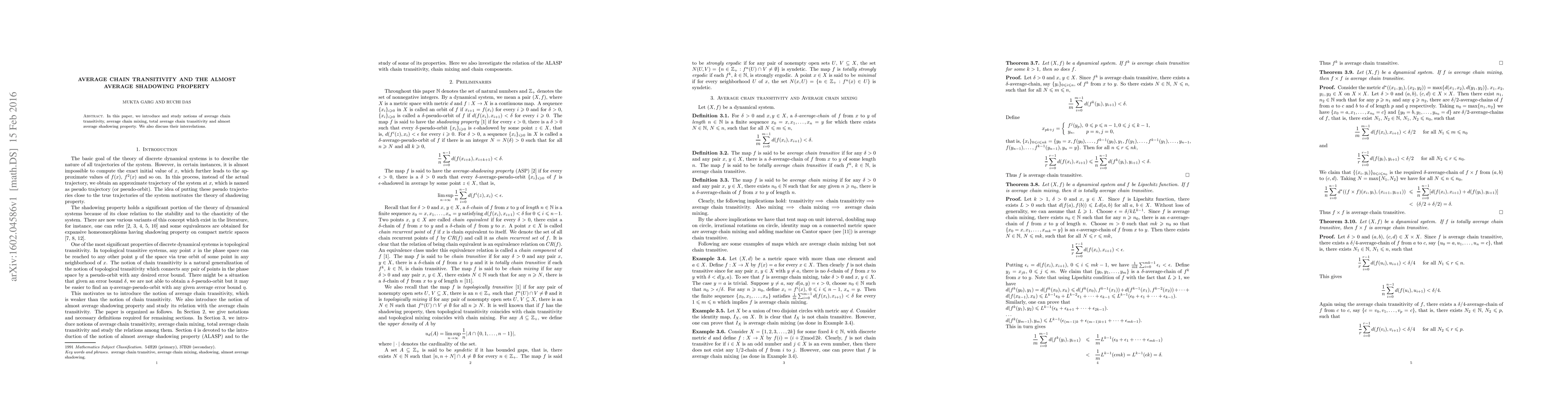 This paper introduces the concepts of average chain transitivity, average chain mixing, and total average chain transitivity, alongside the almost average shadowing property, and explores their interrelations within dynamical systems.
