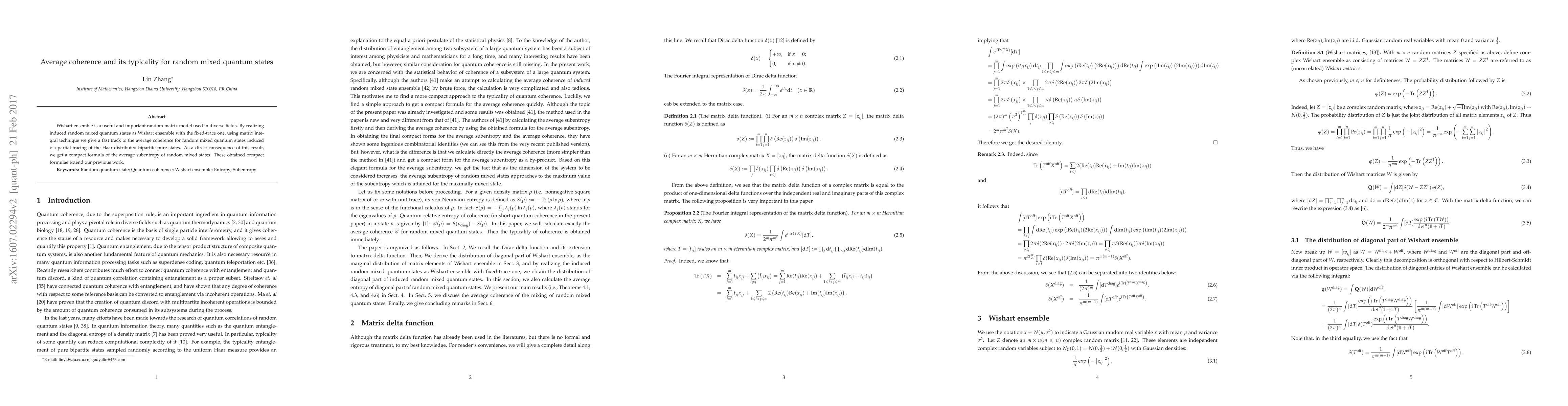 This paper utilizes the Wishart ensemble to derive average coherence and subentropy for random mixed quantum states induced by partial tracing of Haar-distributed bipartite pure states, providing a new matrix integral technique and extending previous results.