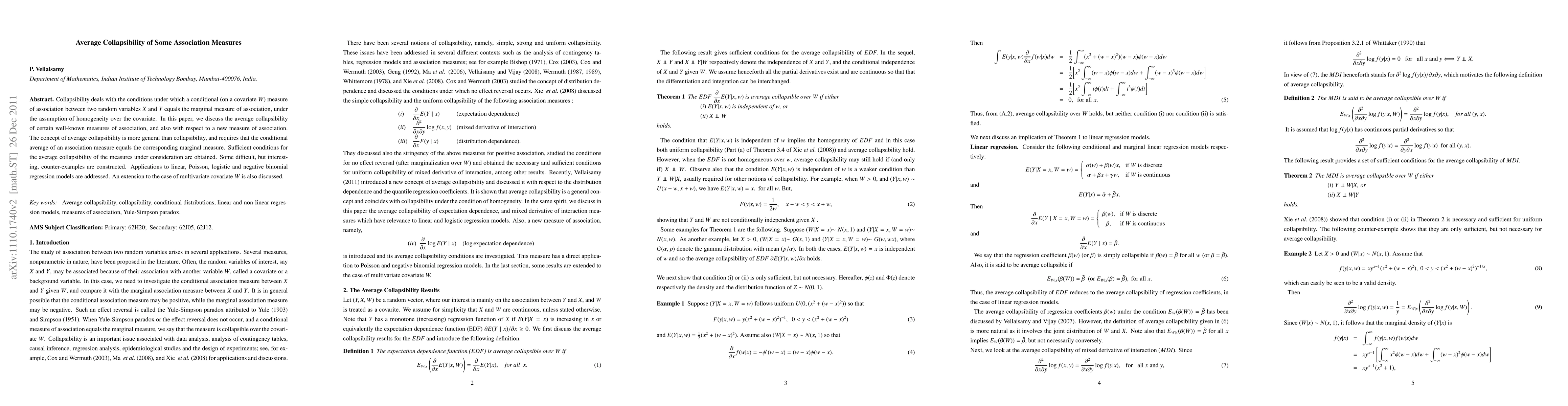 This paper explores the average collapsibility of various association measures, a concept that generalizes traditional collapsibility, and provides sufficient conditions for their average collapsibility. It also constructs counter-examples and applies the findings to several regression models, extending the discussion to multivariate covariates.