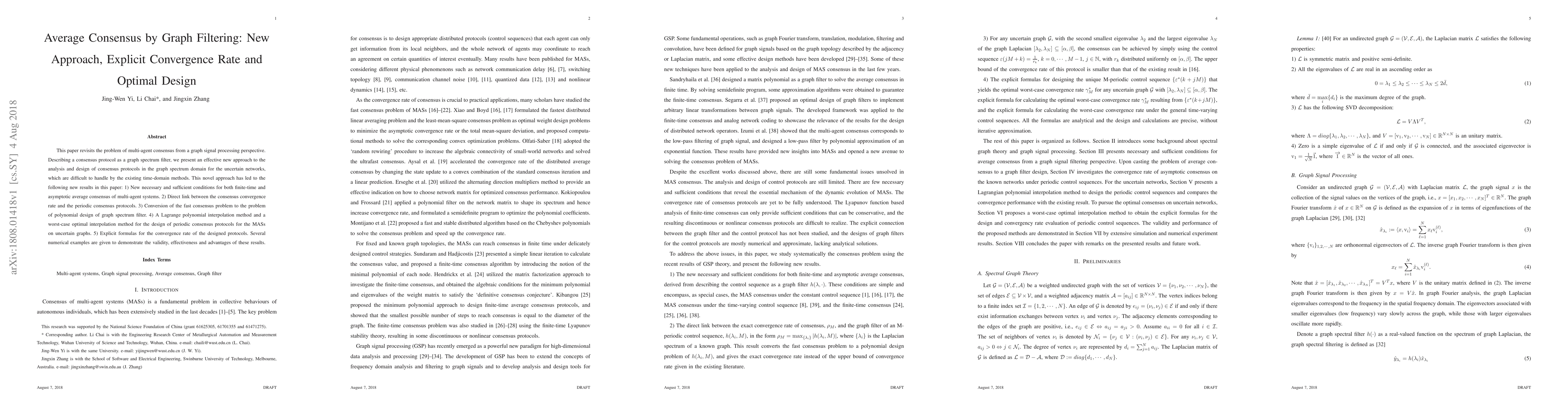 This paper revisits the problem of multi-agent consensus from a graph signal processing perspective. Describing a consensus protocol as a graph spectrum filter, we present an effective new approach to the analysis and design of consensus protocols in the graph spectrum domain for the uncertain networks, which are difficult to handle by the existing time-domain methods. This novel approach has led to the following new results in this paper: 1) New necessary and sufficient conditions for both finite-time and asymptotic average consensus of multi-agent systems. 2) Direct link between the consensus convergence rate and the periodic consensus protocols. 3) Conversion of the fast consensus problem to the problem of polynomial design of graph spectrum filter. 4) A Lagrange polynomial interpolation method and a worst-case optimal interpolation method for the design of periodic consensus protocols for the MASs on uncertain graphs. 5) Explicit formulas for the convergence rate of the designed protocols. Several numerical examples are given to demonstrate the validity, effectiveness and advantages of these results.
