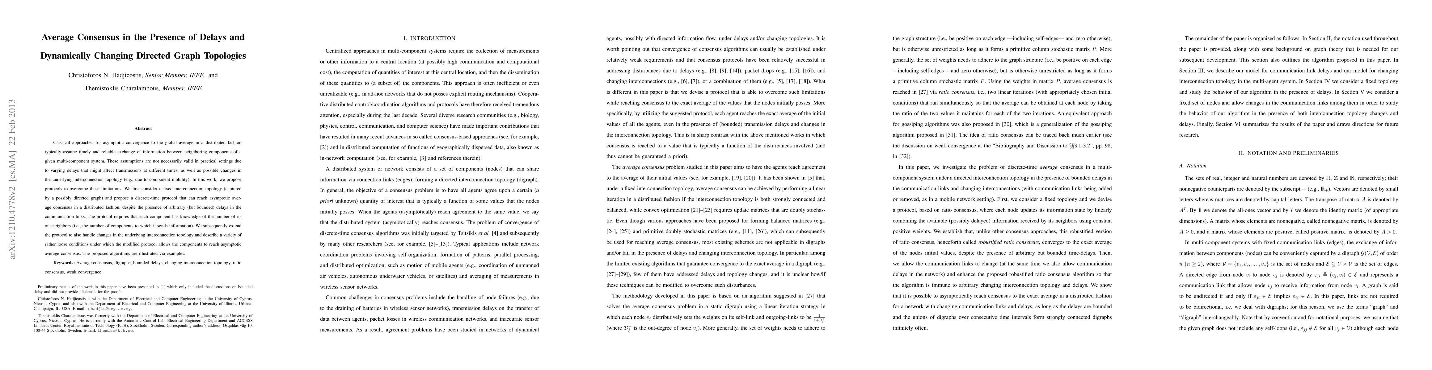 Classical approaches for asymptotic convergence to the global average in a distributed fashion typically assume timely and reliable exchange of information between neighboring components of a given multi-component system. These assumptions are not necessarily valid in practical settings due to varying delays that might affect transmissions at different times, as well as possible changes in the underlying interconnection topology (e.g., due to component mobility). In this work, we propose protocols to overcome these limitations. We first consider a fixed interconnection topology (captured by a - possibly directed - graph) and propose a discrete-time protocol that can reach asymptotic average consensus in a distributed fashion, despite the presence of arbitrary (but bounded) delays in the communication links. The protocol requires that each component has knowledge of the number of its outgoing links (i.e., the number of components to which it sends information). We subsequently extend the protocol to also handle changes in the underlying interconnection topology and describe a variety of rather loose conditions under which the modified protocol allows the components to reach asymptotic average consensus. The proposed algorithms are illustrated via examples.