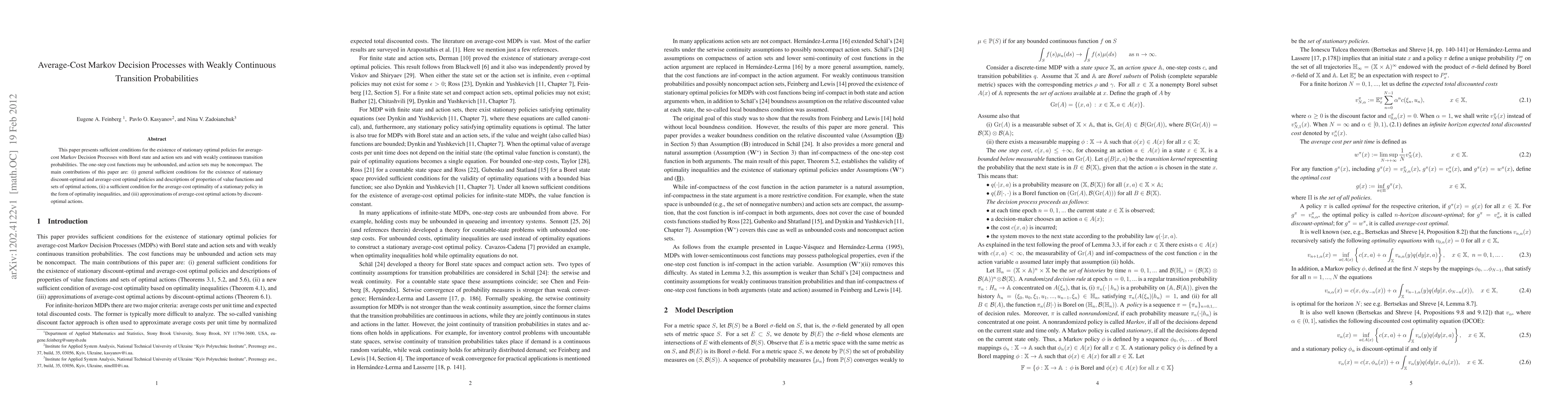 This paper establishes sufficient conditions for the existence of optimal stationary policies in average-cost Markov Decision Processes with weakly continuous transition probabilities, even when cost functions are unbounded and action sets are noncompact. The study also provides optimality inequalities and methods to approximate average-cost optimal actions using discount-optimal actions.