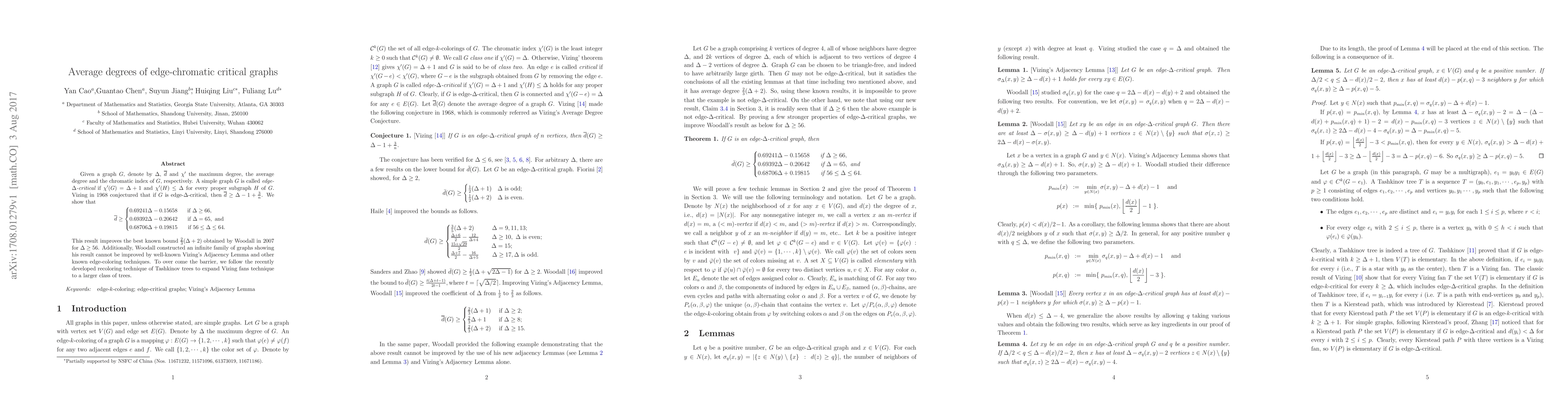 This paper refines Vizing's 1968 conjecture on edge-chromatic critical graphs by providing a tighter bound for the average degree of such graphs, with implications for graph coloring techniques.