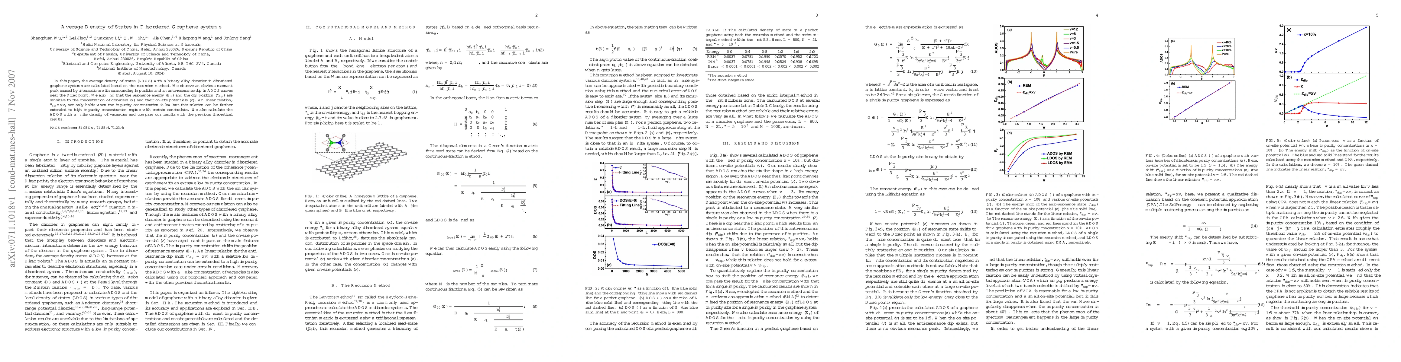 In this paper, the average density of states (ADOS) with a binary alloy disorder in disordered graphene systems are calculated based on the recursion method. We observe an obvious resonant peak caused by interactions with surrounding impurities and an anti-resonance dip in ADOS curves near the Dirac point. We also find that the resonance energy (Er) and the dip position are sensitive to the concentration of disorders (x) and their on-site potentials (v). An linear relation, not only holds when the impurity concentration is low but this relation can be further extended to high impurity concentration regime with certain constraints. We also calculate the ADOS with a finite density of vacancies and compare our results with the previous theoretical results.