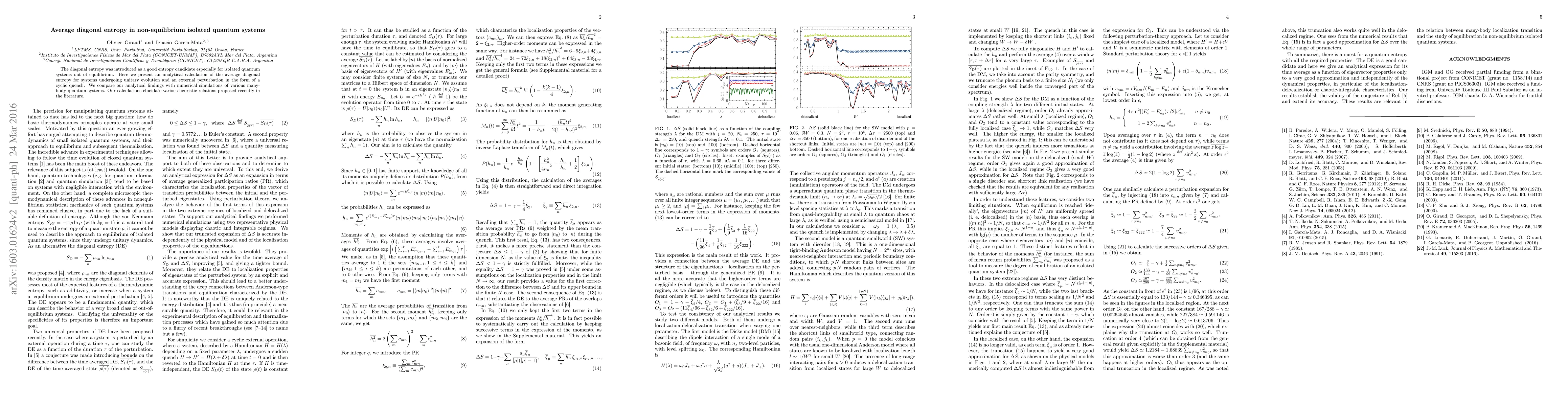 This research analytically calculates the average diagonal entropy in non-equilibrium, isolated quantum systems undergoing unitary evolution and cyclic quench perturbation. Findings are validated through numerical simulations of many-body quantum systems, clarifying recent heuristic relations proposed in literature.