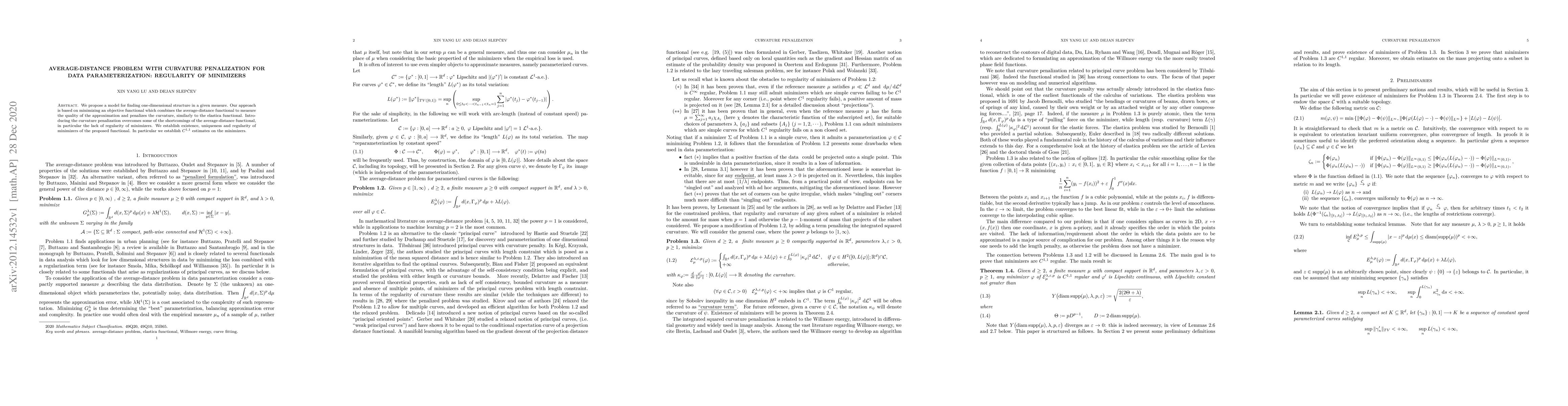 We propose a model for finding one-dimensional structure in a given measure. Our approach is based on minimizing an objective functional which combines the average-distance functional to measure the quality of the approximation and penalizes the curvature, similarly to the elastica functional. Introducing the curvature penalization overcomes some of the shortcomings of the average-distance functional, in particular the lack of regularity of minimizers. We establish existence, uniqueness and regularity of minimizers of the proposed functional. In particular we establish $C^{1,1}$ estimates on the minimizers.