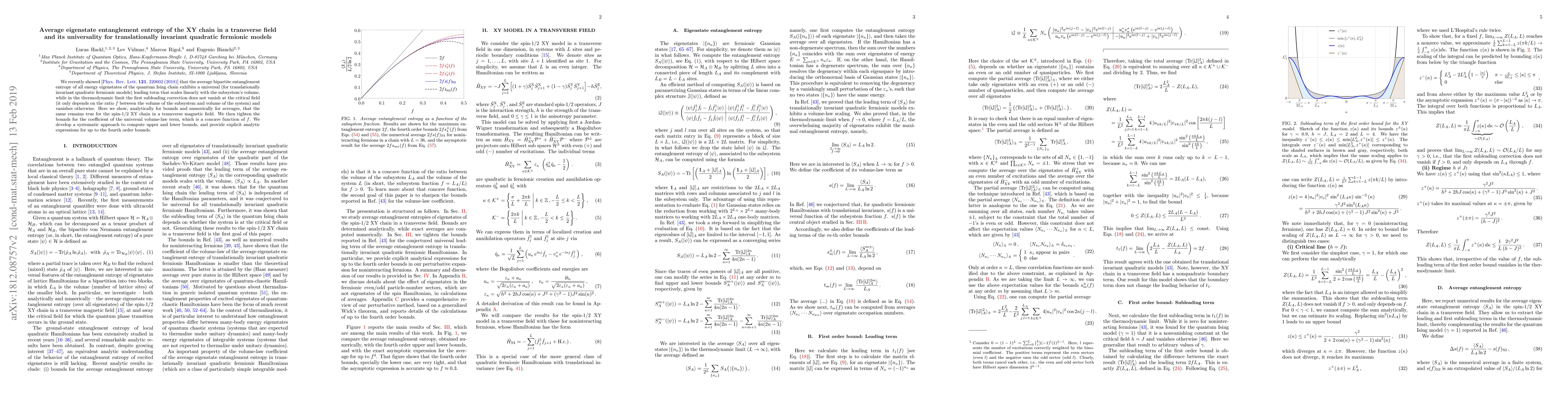 We recently showed [Phys. Rev. Lett. 121, 220602 (2018)] that the average bipartite entanglement entropy of all energy eigenstates of the quantum Ising chain exhibits a universal (for translationally invariant quadratic fermionic models) leading term that scales linearly with the subsystem's volume, while in the thermodynamic limit the first subleading correction does not vanish at the critical field (it only depends on the ratio $f$ between the volume of the subsystem and volume of the system) and vanishes otherwise. Here we show, analytically for bounds and numerically for averages, that the same remains true for the spin-1/2 XY chain in a transverse magnetic field. We then tighten the bounds for the coefficient of the universal volume-law term, which is a concave function of $f$. We develop a systematic approach to compute upper and lower bounds, and provide explicit analytic expressions for up to the fourth order bounds.