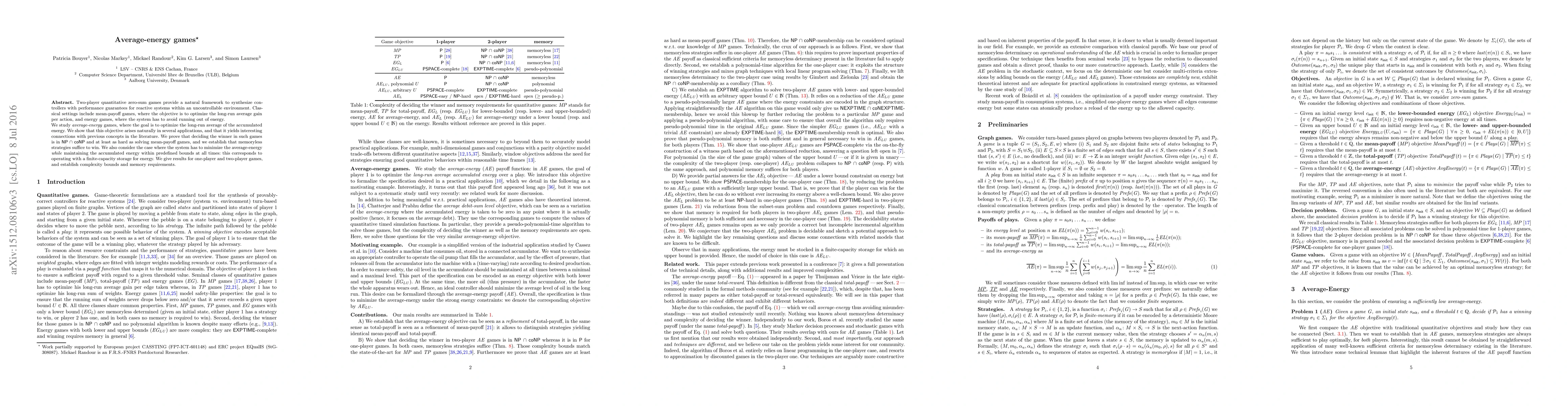 This paper explores average-energy games, focusing on optimizing the long-term average accumulated energy in reactive systems. It establishes that determining the winner in such games is at least as hard as solving mean-payoff games and demonstrates that memoryless strategies are sufficient for winning. It also considers scenarios with finite-capacity energy storage, providing complexity and memory requirements for both one-player and two-player settings.