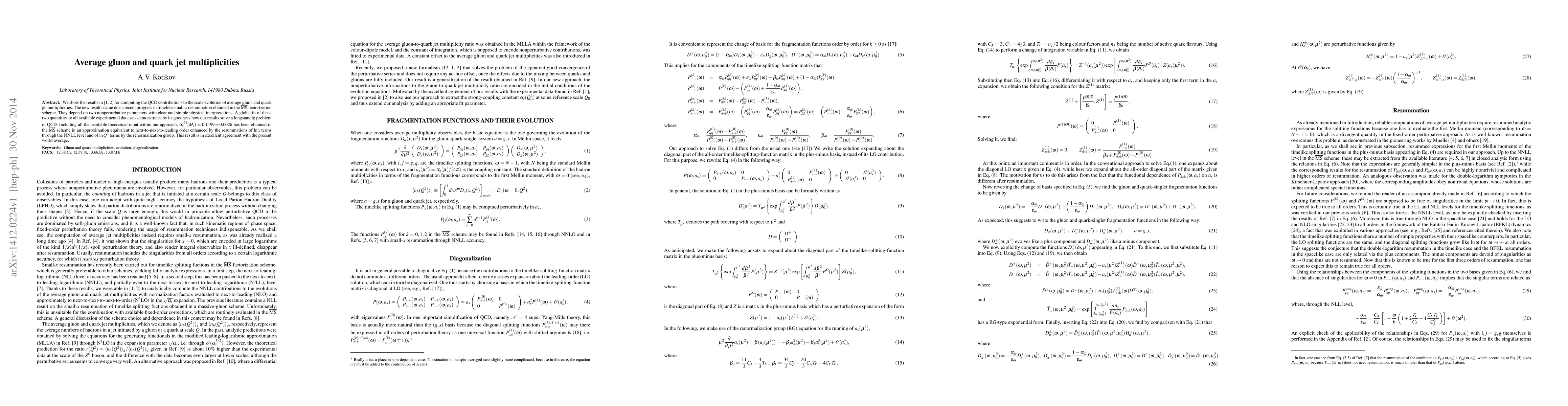We show the results in [1,2] for computing the QCD contributions to the scale evolution of average gluon and quark jet multiplicities. The new results came due a recent progress in timelike small-x resummation obtained in the MSbar factorization scheme. They depend on two nonperturbative parameters with clear and simple physical interpretations. A global fit of these two quantities to all available experimental data sets demonstrates by its goodness how our results solve a longstandig problem of QCD. Including all the available theoretical input within our approach, alphas(Mz)=0.1199 +- 0.0026 has been obtained in the MSbar scheme in an approximation equivalent to next-to-next-to-leading order enhanced by the resummations of ln x terms through the NNLL level and of ln Q2 terms by the renormalization group. This result is in excellent agreement with the present world average.