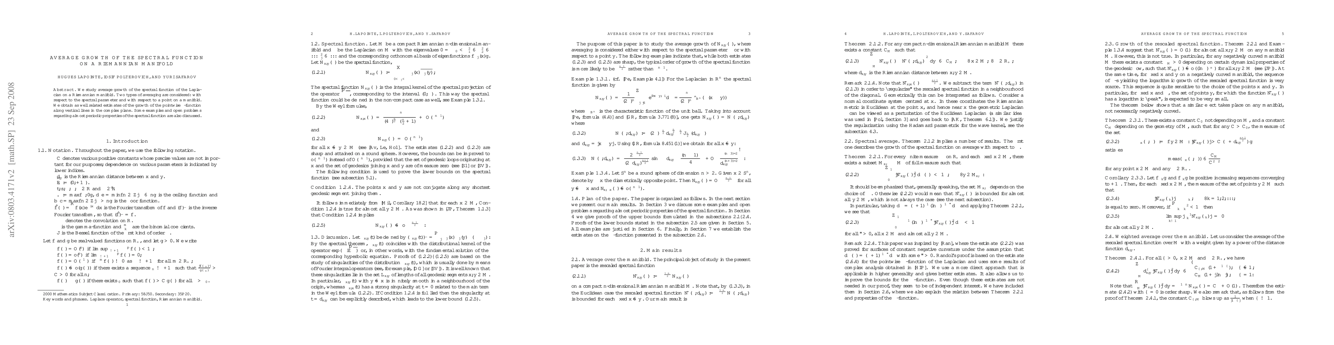 We study average growth of the spectral function of the Laplacian on a Riemannian manifold. Two types of averaging are considered: with respect to the spectral parameter and with respect to a point on a manifold. We obtain as well related estimates of the growth of the pointwise zeta-function along vertical lines in the complex plane. Some examples and open problems regarding almost periodic properties of the spectral function are also discussed.