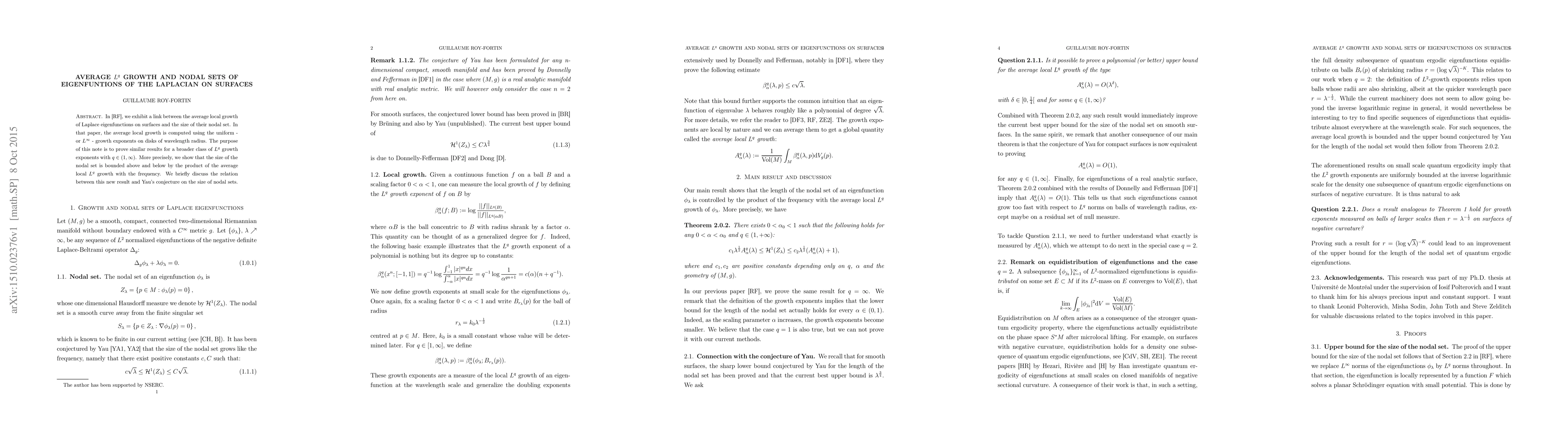 In a recent paper, we exhibit a link between the average local growth of Laplace eigenfunctions on surfaces and the size of their nodal set. In that paper, the average local growth is computed using the uniform - or $L^\infty$ - growth exponents on disks of wavelength radius. The purpose of this note is to prove similar results for a broader class of $L^q$ growth exponents with $q \in (1, \infty)$. More precisely, we show that the size of the nodal set is bounded above and below by the product of the average local $L^q$ growth with the frequency. We briefly discuss the relation between this new result and Yau's conjecture on the size of nodal sets.