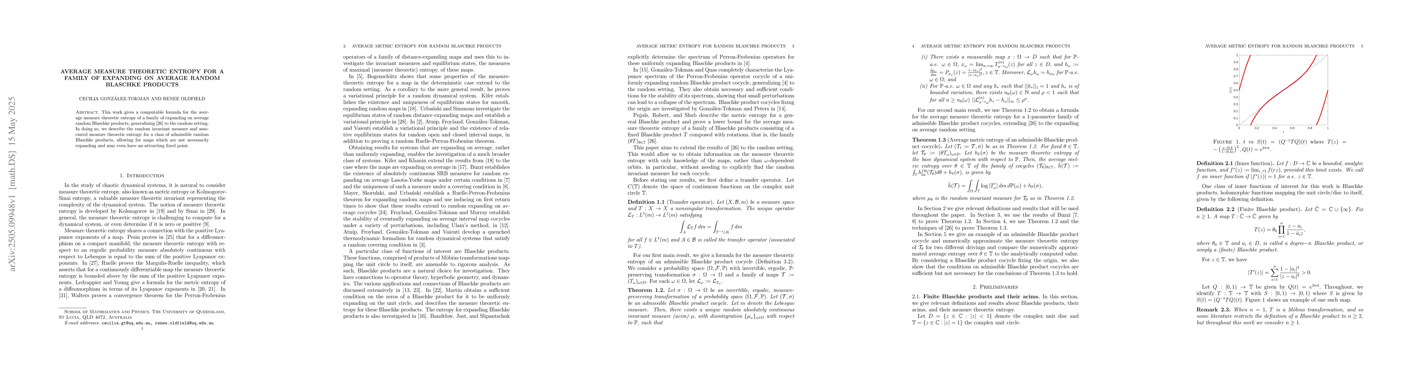 The research derives a computable formula for average measure theoretic entropy of a family of expanding on average random Blaschke products, extending previous work by Pujals, Roberts, and Shub to the random setting.