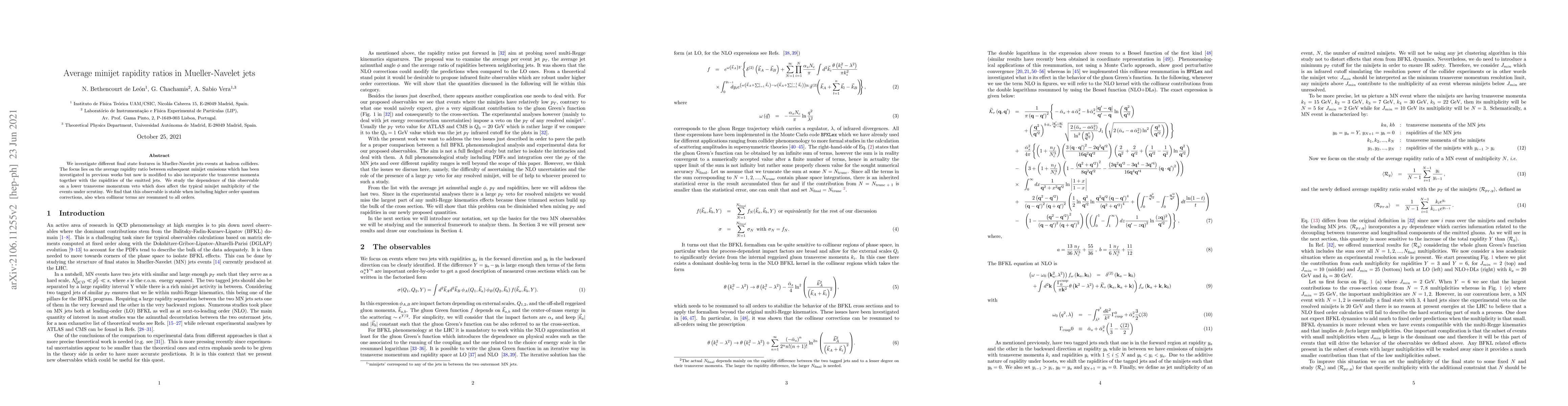 Researchers studied a phenomenon in particle collisions involving minijet emissions, finding that a specific ratio of rapidities is stable even when including quantum corrections and collinear terms.