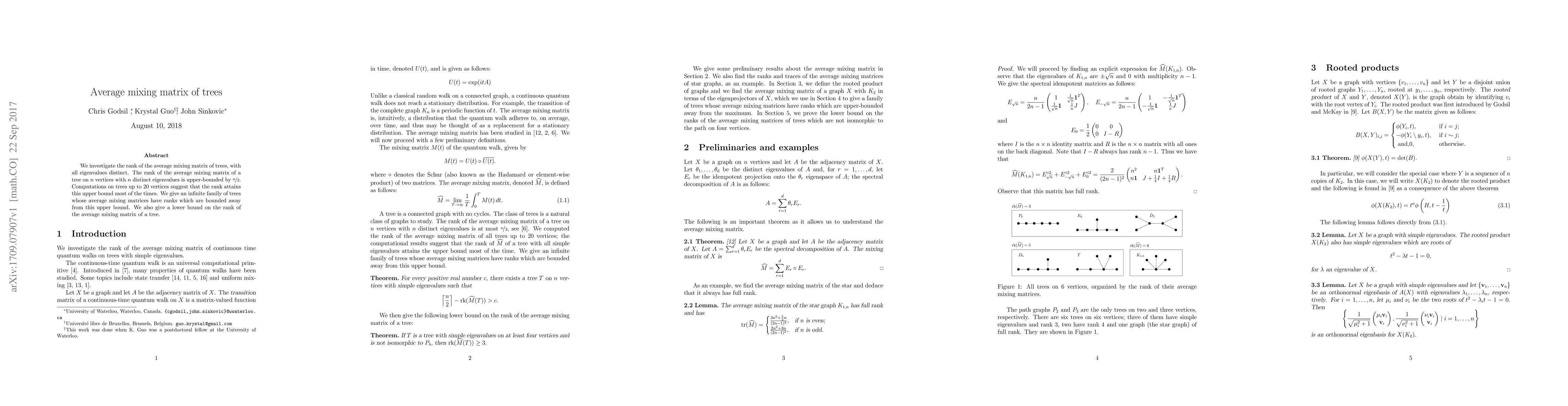 The average mixing matrix of trees has a rank upper-bounded by n/2 for trees on n vertices with distinct eigenvalues. For most cases with up to 20 vertices, this bound is attained.