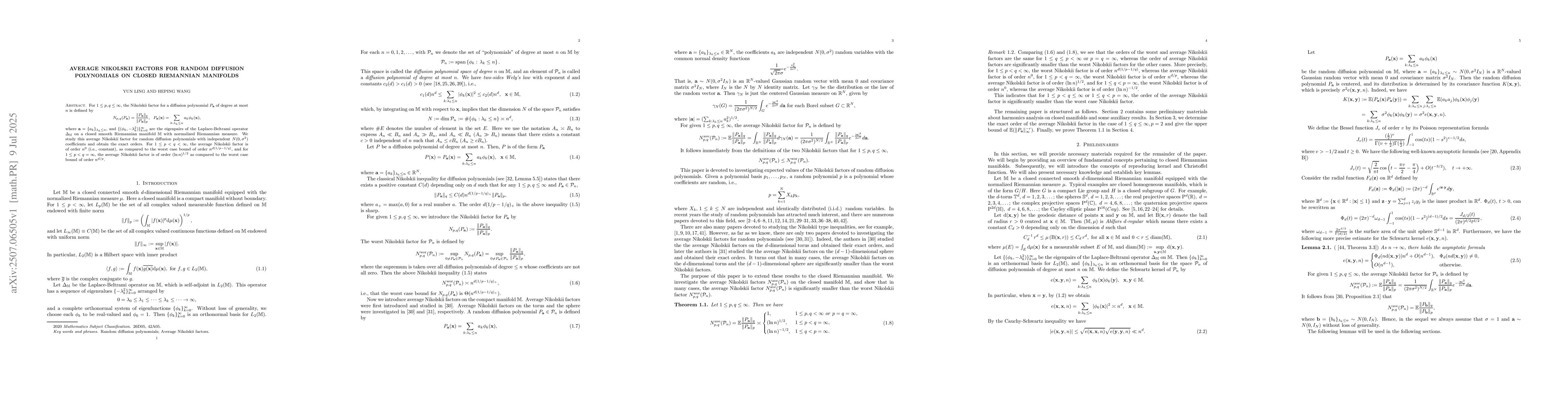 measure. We study this average Nikolskii factor for random diffusion