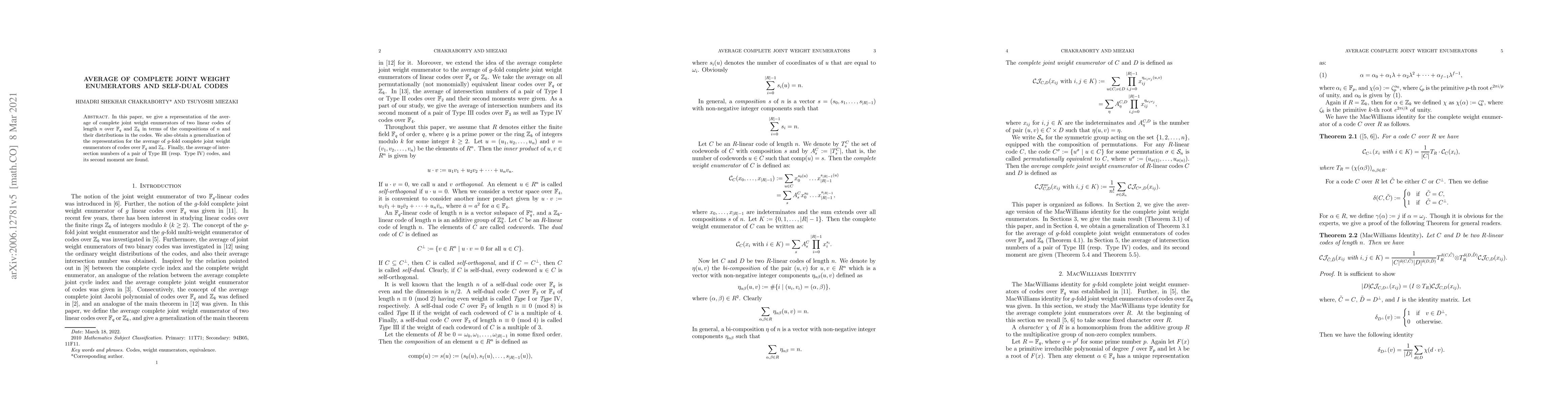 This paper represents the average of complete joint weight enumerators for two linear codes over different fields and rings, linking these averages to the compositions of code lengths and their distributions. It also generalizes this representation for multiple codes and examines the average intersection numbers and their second moments for Type III and Type IV codes.