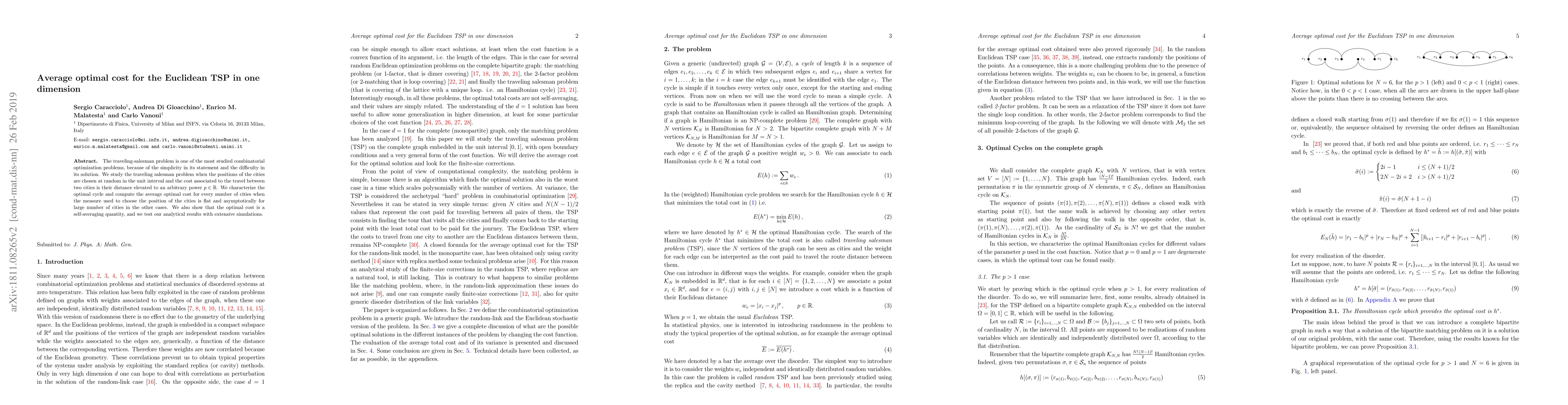 The research paper studies the optimal cost for solving the Traveling Salesman Problem (TSP) with cities positioned randomly in a unit interval, where travel costs are based on distance raised to an arbitrary power. It finds that the optimal cost is self-averaging and computes average optimal costs for varying numbers of cities.