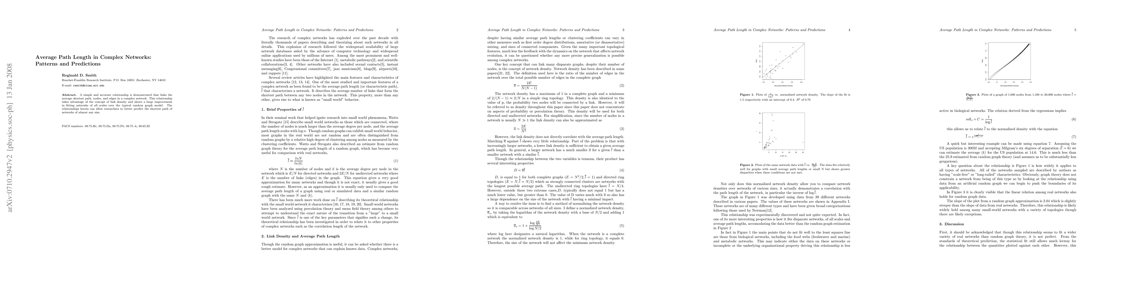 A simple and accurate relationship is demonstrated that links the average shortest path, nodes, and edges in a complex network. This relationship takes advantage of the concept of link density and shows a large improvement in fitting networks of all scales over the typical random graph model. The relationships herein can allow researchers to better predict the shortest path of networks of almost any size.