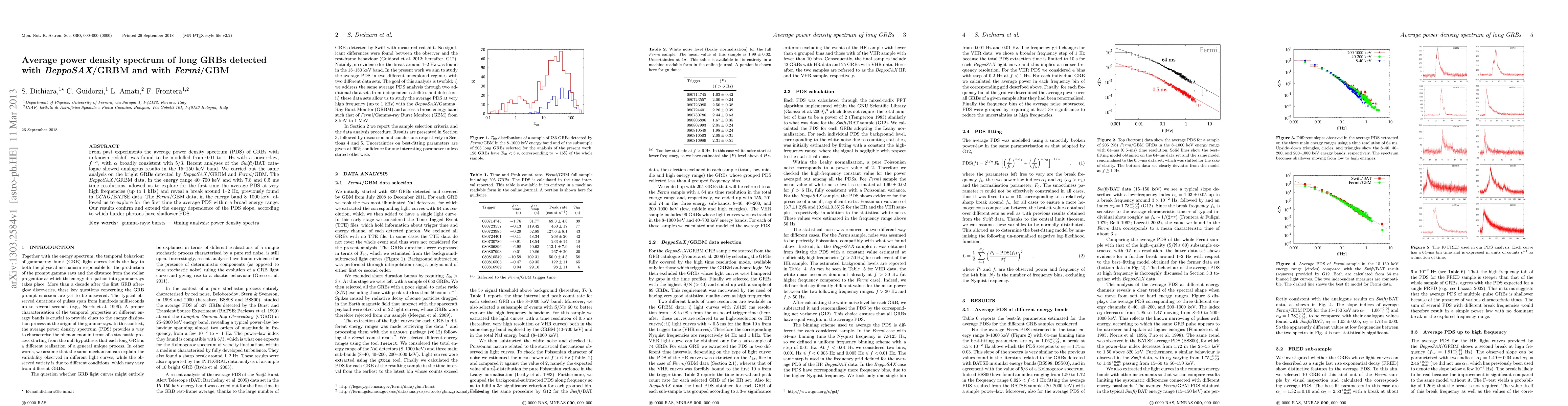 From past experiments the average power density spectrum (PDS) of GRBs with unknown redshift was found to be modelled from 0.01 to 1 Hz with a power-law, f^(-alpha), with alpha broadly consistent with 5/3. Recent analyses of the Swift/BAT catalogue showed analogous results in the 15-150 keV band. We carried out the same analysis on the bright GRBs detected by BeppoSAX/GRBM and Fermi/GBM. The BeppoSAX/GRBM data, in the energy range 40-700 keV and with 7.8 and 0.5-ms time resolutions, allowed us to explore for the first time the average PDS at very high frequencies (up to 1 kHz) and reveal a break around 1-2 Hz, previously found in CGRO/BATSE data. The Fermi/GBM data, in the energy band 8-1000 keV, allowed us to explore for the first time the average PDS within a broad energy range. Our results confirm and extend the energy dependence of the PDS slope, according to which harder photons have shallower PDS.