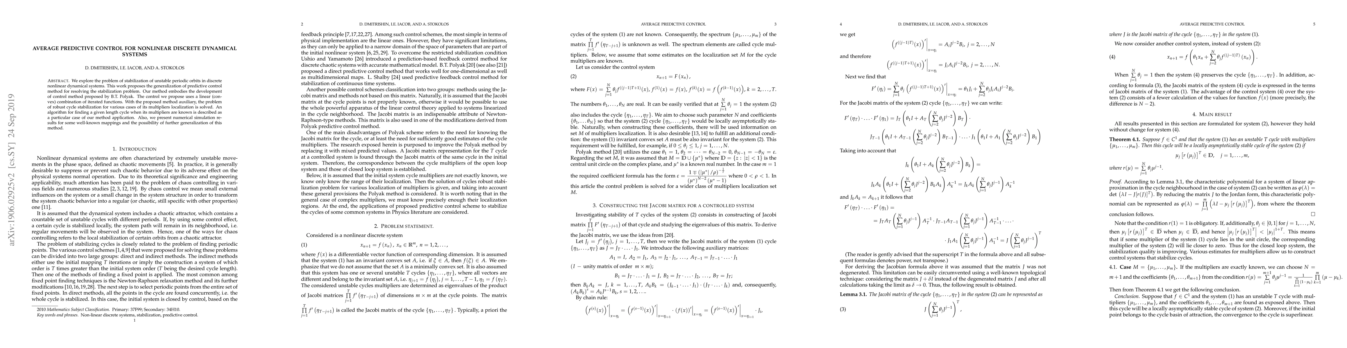 We explore the problem of stabilization of unstable periodic orbits in discrete nonlinear dynamical systems. This work proposes the generalization of predictive control method for resolving the stabilization problem. Our method embodies the development of control method proposed by B.T. Polyak. The control we propose uses a linear (convex) combination of iterated functions. With the proposed method auxiliary, the problem of robust cycle stabilization for various cases of its multipliers localization is solved. An algorithm for finding a given length cycle when its multipliers are known is described as a particular case of our method application. Also, we present numerical simulation results for some well-known mappings and the possibility of further generalization of this method.