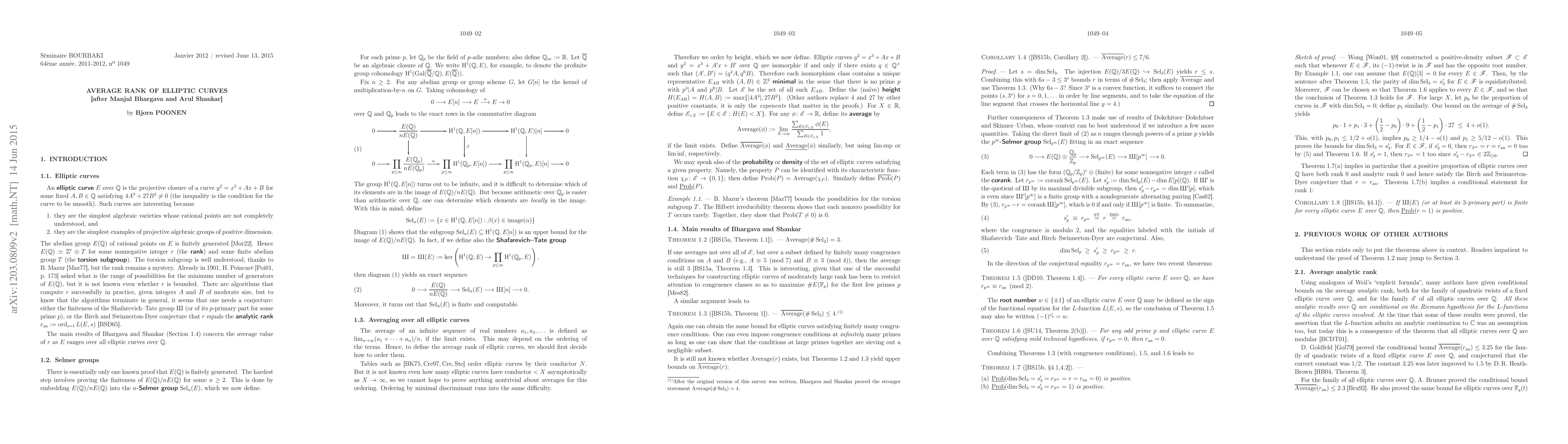 Bhargava and Shankar demonstrate that the average rank of elliptic curves over the rational numbers is bounded, relying on an exact formula for the average size of the 2-Selmer group derived from an asymptotic formula for binary quartic forms. This result has significant implications for arithmetic geometry.