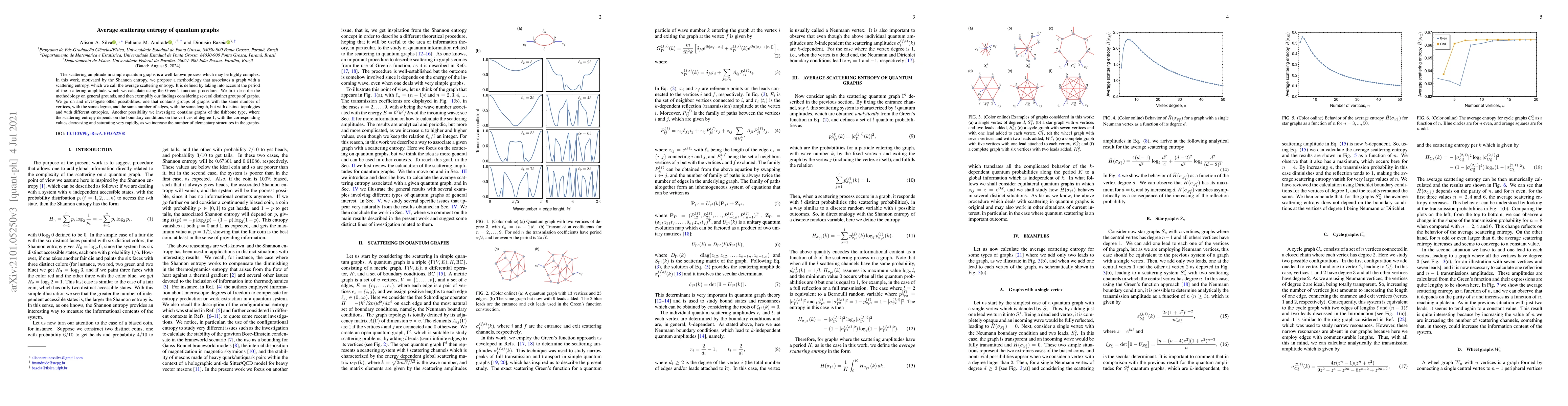 The scattering amplitude in simple quantum graphs is a well-known process which may be highly complex. In this work, motivated by the Shannon entropy, we propose a methodology that associates to a graph a scattering entropy, which we call the average scattering entropy. It is defined by taking into account the period of the scattering amplitude which we calculate using the Green's function procedure. We first describe the methodology on general grounds, and then exemplify our findings considering several distinct groups of graphs. We go on and investigate other possibilities, one that contains groups of graphs with the same number of vertices, with the same degree, and the same number of edges, with the same length, but with distinct topologies and with different entropies. And the other, which contains graphs of the fishbone type, where the scattering entropy depends on the boundary conditions on the vertices of degree $1$, with the corresponding values decreasing and saturating very rapidly, as we increase the number of elementary structures in the graphs.