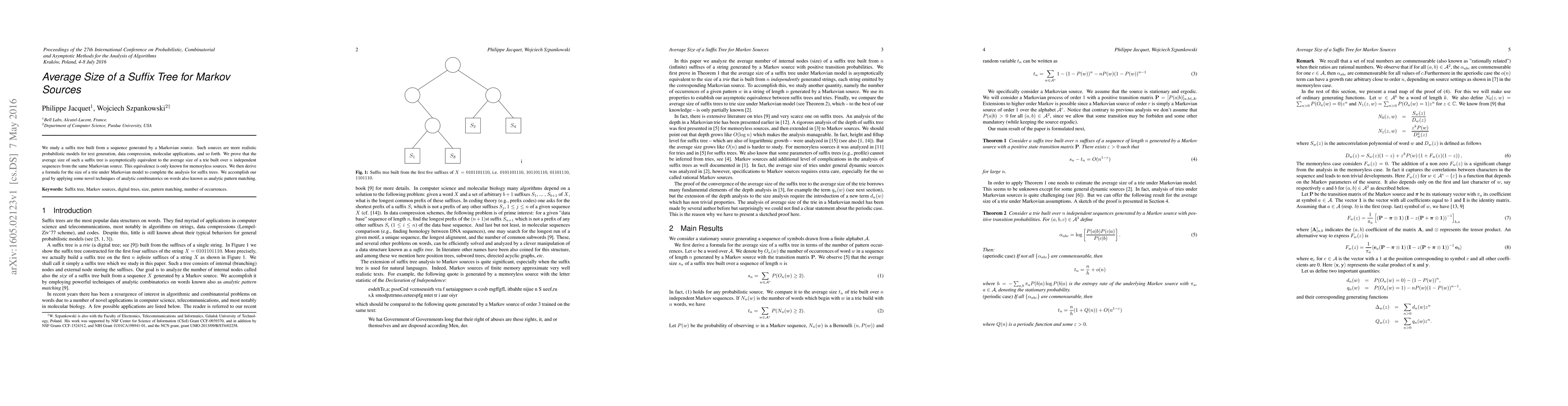 This paper investigates the average size of a suffix tree constructed from sequences generated by Markov sources, demonstrating its asymptotic equivalence to the size of a trie built from the same source. The study employs novel analytic techniques to derive a formula for the trie size under Markovian models, extending beyond the known equivalence for memoryless sources.