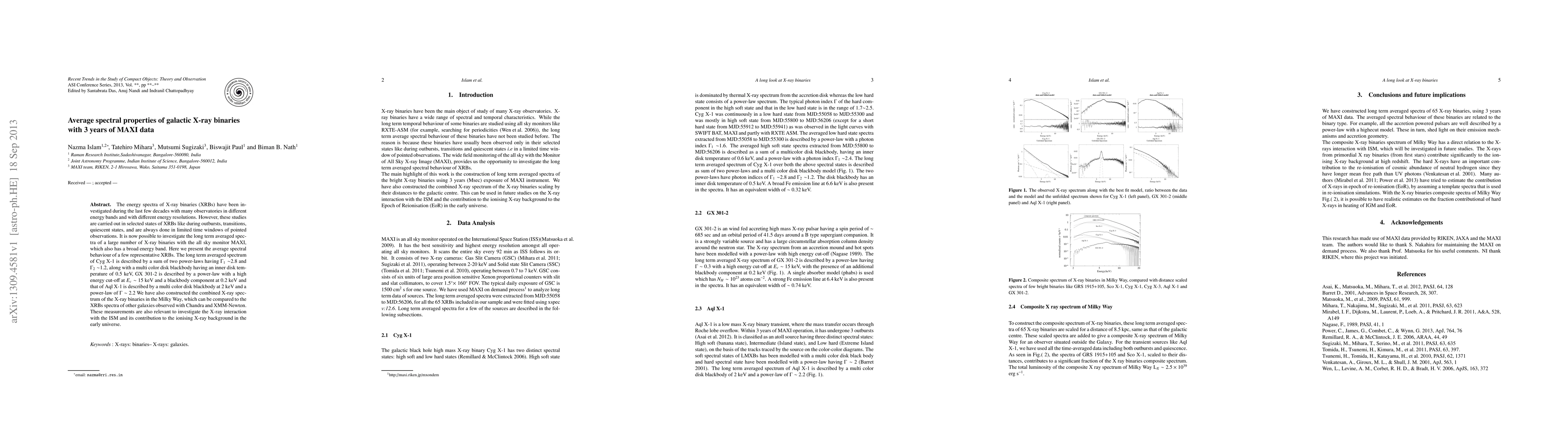 This research presents average X-ray spectra of several galactic X-ray binaries using 3 years of MAXI data, revealing Cyg X-1's spectrum as two power-laws with different indices and a disk blackbody, GX 301-2's spectrum as a power-law with high energy cut-off and a blackbody, and Aql X-1's spectrum as a disk blackbody and a power-law. A combined X-ray spectrum of Milky Way XRBs is also constructed for comparison with spectra from other galaxies and to study X-ray interaction with ISM and its role in early universe ionization.